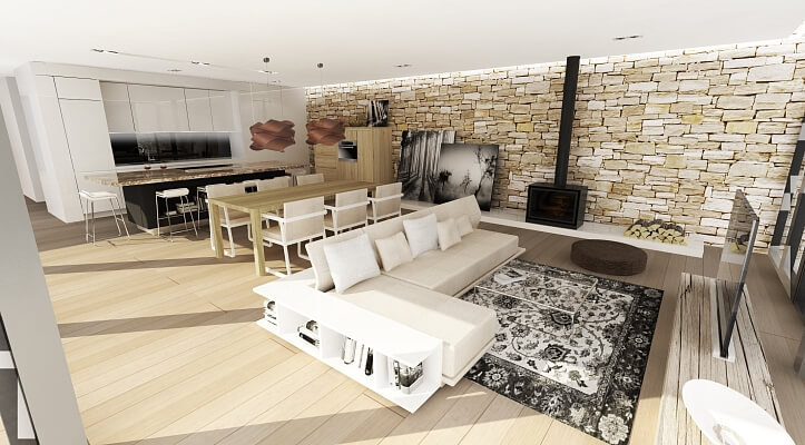 When designing family houses and villas, the studio makes every effort in creating comfortable housing and in connecting the interior with an outside green space or garden. Family houses designed by ATELIER KUNC are characterized by airy free spaces with large windows allowing an abundance of sun, and natural transitions between gardens and houses. The portfolio of services of the studio covers the whole creation of a family house from its concept to selection of suppliers, realization of interior, as well as construction and technical supervision at the construction site.