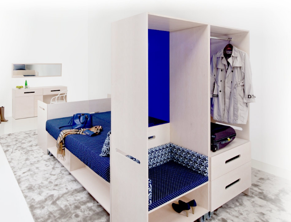 This compact furniture structures are perfect for students and for those living in small spaces, as well as for hotels or upscale hostels. Combining everything together including a bed, sitting area, a closet, adequate storage space, and even a desk KIBIK furniture is truly convenient and compact. KIBIK furniture is available in two different collections, KAMBRO and SKATOLO – the Kambro collection being more for hotels and upscale establishments. The Skatolo design is more suitable for students.