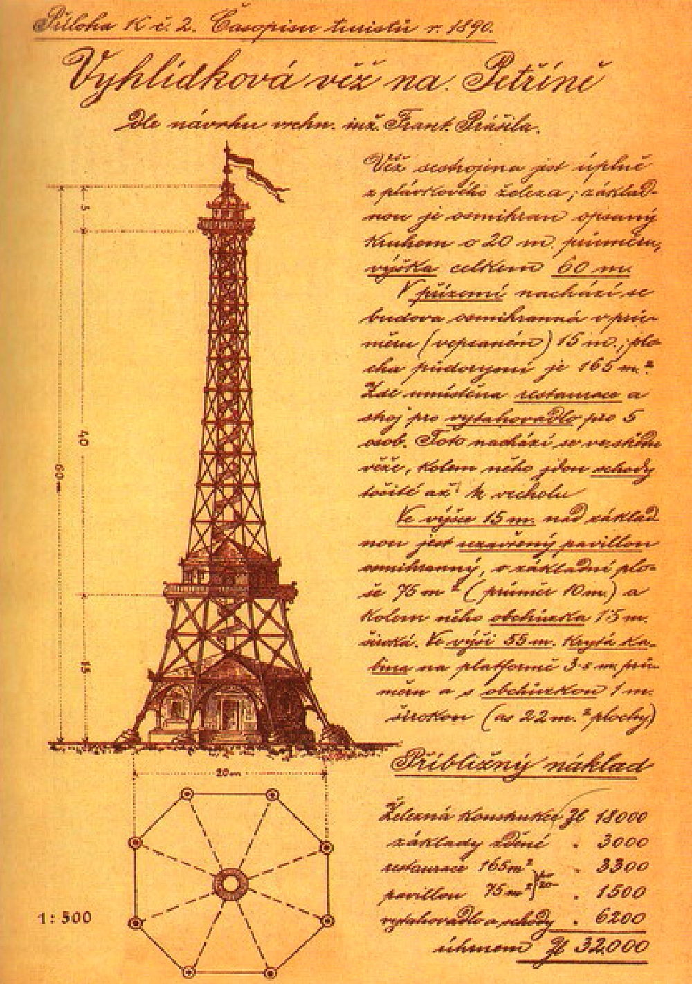 The idea of building a miniature copy of the famous Eiffel Tower was born in the minds of the Club of Czech Tourists returning from the Paris World Exhibition. The vision of Petřín Hill with a cable car and a watchtower was later described by one of them, Dr. Kurz, in an article in the Der Politik newspaper. Apparently, the description was so vivid and attractive that the Czech public started shortly after contributing financial donations in the form of allotment certificates worth 50 goldens to pay for the realization of Kurz’s vision. The Petřín Watchtower was inaugurated on August 20th, 1891. You can enjoy the result of this national upheaval even now. What’s more, in the basement of the watchtower, you can visit the exhibition of the Czech genius Jara Cimrman.