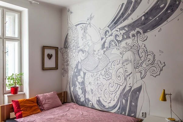 KEM creation offers custom wall painting for businesses, bars, restaurants, flats, houses and other premises. The topic or theme of the given space is implemented either according to your idea, or from the creative ideas of the company professionals that will prepare different versions for you to choose from – all in order to gain a more vivid space that will offer a new impression. By painting walls you can optically enlarge or abate the space and create the right atmosphere (creative fun in a kid’s room, a romantic setting in a bedroom, exclusivity in an office, etc.) The company implements different surface treatments and techniques (spotty effect, interpenetration, relief profile, etc.) The wall treatment offer includes original stucco plaster and paint technology as an alternative to simple bare paint on the wall. It is also of interest to note that KEM creation offers their services in the area of advertising and street art in an innovative way. They are able to paint everything from small paintings to large areas (street-painting) with interesting custom made adverts for various purposes and events – corporate events, concerts, festivals, etc.
