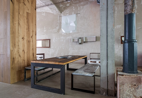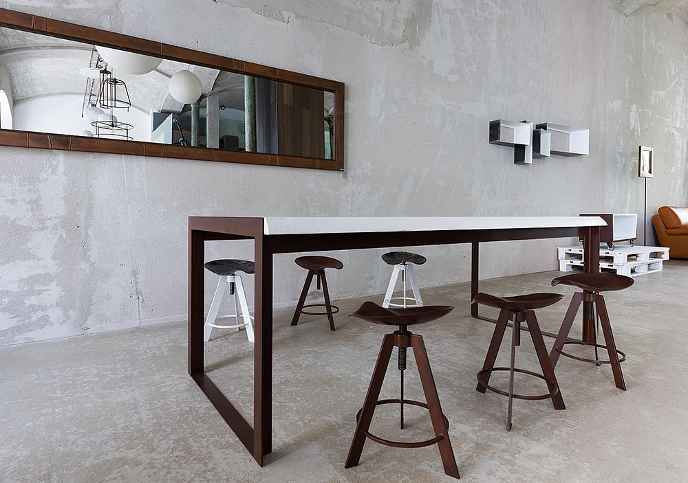 This Czech designer and architect, whose second home is Italy, has been dedicated to his brand Vladan Běhal Design since 2002. He creates unique pieces of designer furniture and interior accessories that are characterized by typical shape brevity, basic, geometrical lines and a timeless elegance based on those features. Design work by Vladan Běhal is dominated by steel, usually complemented with a warmer, natural material, such as solid wood. The top-quality workmanship, alongside with minimalistic and industrial design, makes all the products from Vladan Běhal's brand utterly timeless and appreciable for the next 5, 10 or even 20 years. Among the products, all of which are coming to existence in the Olomouc workshop, are dining tables, conference tables, chairs and stools, storage furniture and also impressive interior accessories that are partly made of pure natural elements and, thanks to that, boast a stylish, raw tint. Spending his childhood and part of his teens in his father's workshop, Vladan became familiar with steel, its characteristics and usage pretty early and was able to create his first designer piece early as well. During the following years, Vladan devoted himself to studying fine arts, sculpture and design both in the Czech Republic and Italy, which continues to be an inspiration for him. Thanks to close ties to Italy and as his work is internationally renowned, the Prague showroom boasts a wide selection of premium furniture and accessories from first-class European designers and family companies, the majority of which is not normally available on the Czech market. In case Vladan's work and style have caught your eye, let him bring the industrial, distinctive and timeless spirit to the interiors of your apartment or house, or any exterior space. He will create a design concept based on your wishes and then implement it perfectly, leaving you with a stylish, yet timeless interior with original furniture by Vladan Běhal Design or other premium suppliers. Visit the showroom on Šaldova Street, meet Vladan Běhal personally and discuss all the possibilities of a custom-made design concept.