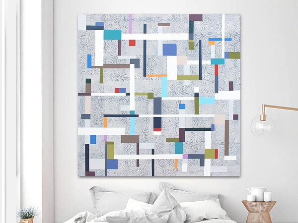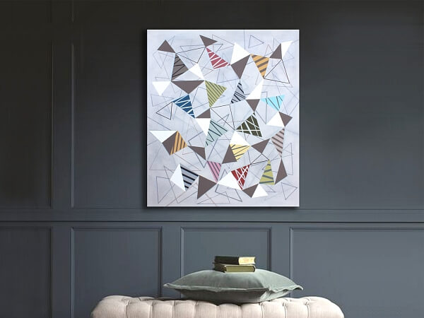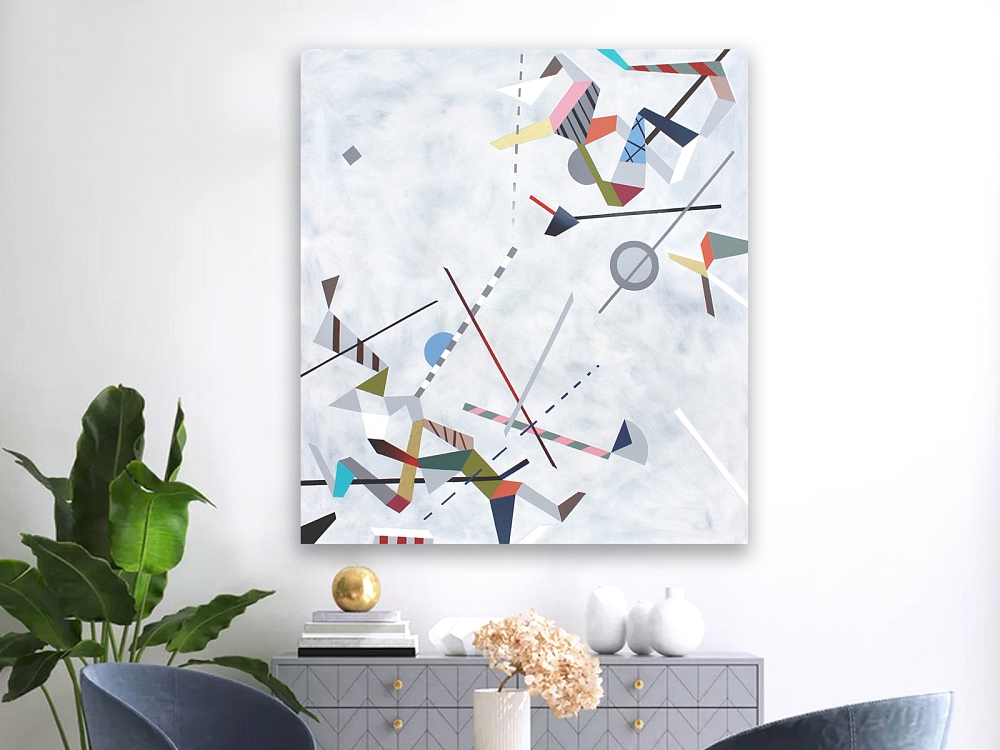 After graduating from the Painting Studio at the Academy of Arts, Architecture & Design in Prague, Lucie began working on her own creative projects—paintings and occasional graphic design or modern wall paintings. Since she developed a truly unique style, she decided to put her works out under a single brand—Studio CODECO. The studio’s main mission is to approach art in an innovative way, with an eye for detail, combining colors, shapes, and ideas in her own signature style. Her predominantly abstract geometric paintings have attracted dozens of admirers from around the world and they hang in many private collections in the USA, Great Britain, several European countries, Japan, Hong Kong, and Australia. Besides original paintings, Studio CODECO also focuses on modern murals in interiors, offices, and public areas. A one-of-a-kind painting can transform a room’s atmosphere—there are no limits to imagination. If you like the colors, shapes, and playfulness of Lucie Jirků’s paintings, but have your own ideas about the size of the artwork? Studio CODECO will be happy to meet your specific request. Have a look at what paintings Studio CODECO currently has to offer and add some contemporary art to your life. Or you can arrange a customized wall painting. The space you want to make over will be completely transformed.