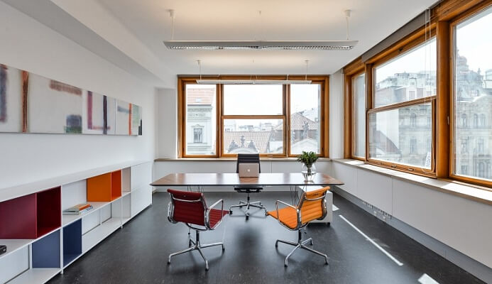 For many years now, the Svoboda & Williams real estate agency has been specializing in leasing serviced offices and coworking space, primarily located in administrative buildings with the most sought-after business addresses in Prague. Our diverse portfolio includes private offices for short-term lease, as well as coworking space that you can use whenever you need to, and professionally equipped conference rooms. The advantages of these types of offices are their flexible lease terms and layouts—you can lease an office that’s just the size you need and you won’t be tied down by a long-term lease. The shared offices for short-term lease in the catalog of Svoboda & Williams are complete with modern facilities, high-speed Wi-Fi, and a reception. Have a look at our selection of shared offices and coworking space today. You might find exactly the space that fulfills your workspace needs.