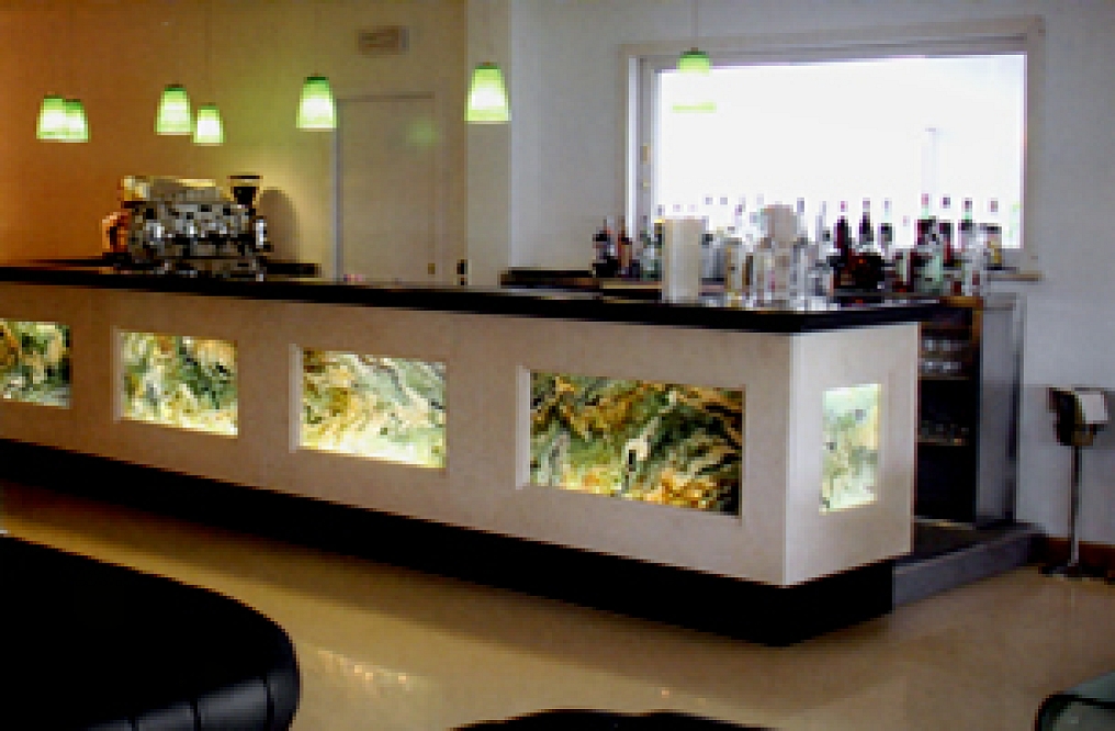 Mramoria provides interior stone walls, kitchen counters and floor tiles. The used materials include marble, granite, slate, onyx, sandstone and other types of stone that Mramoria buys from quality quarries in the Czech Republic and in various places all over the world. An ideal solution for your facade may be Stonepanel, an architectural element that is suitable both for interiors and exteriors. Mramoria’s offer includes also decorative stones such as boulders from the High Tatras in Slovakia ranging from small pebbles to monuments weighing several tons. You can also buy a luxury wooden coffee or dining table with an illuminated onyx desk top that creates a perfect play of light and stone. These tables are suitable both for commercial space and as design elements of living spaces. Using the most modern technologies called granite glass and alabastro Mramoria produces reception desks and bar counters, decoration walls and counters, illuminated bathtubs and more. The company’s offer also includes stone fireplaces that use organic alcohol and do not produce any smoke or emissions.
