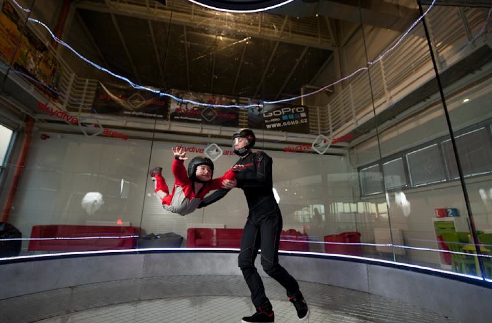 Hurricane Factory in Prague's Letňany offers an unusual adrenaline experience that is at the same time safe and can be practiced by any physically competent individual above 5 years of age. In this unique wind tunnel you will experience not only flying but also a free fall. The vertical tunnel is 14 meters high and its diameter is 4,3 meters. You are held in the air with a constant wind stream reaching a speed of up to 270 km/hour. You do not have to have any special skills or undergo any long training course in order to try flying in the air. For your flight you will be provided with a flight-suit, helmet, gloves and protective glasses. At the end you can leave with your unique experience of flying in a wind tunnel recorded on DVD.