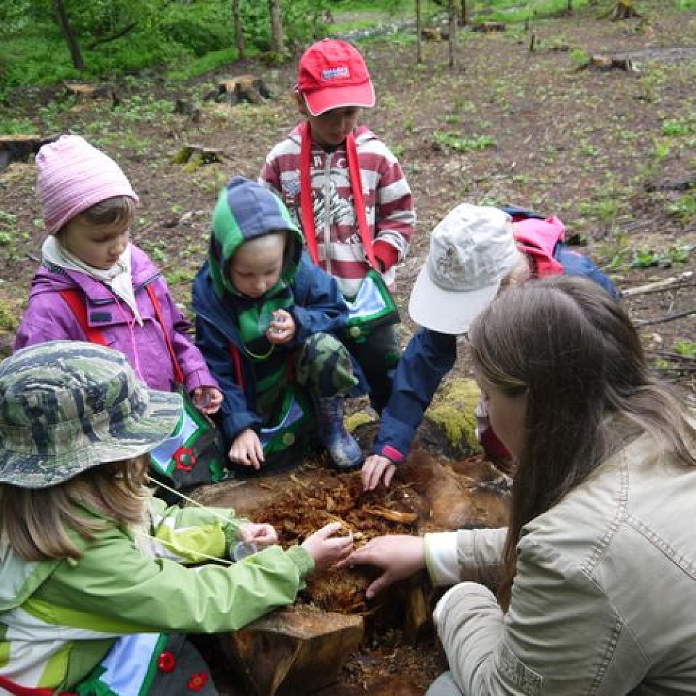 Children are accompanied on their outdoor adventures by Zdeňka „Květuška“ Hrubá, a long-time teacher of nature programs for children and adults, and Pavlína Štěpánková, a teacher of nature programs for children and a popular teacher at the Semínko ecological kindergarten. Together with the children they explore and observe both the visible and invisible environments, listen to its various sounds and discover their meanings, and tell stories about its various creatures. Children learn in a natural way to respect nature and protect it, and to search for beauty in places where they would hardly find it in the world of consumerism. Children who love Všeználek are versatile and inquisitive and like to try new things.