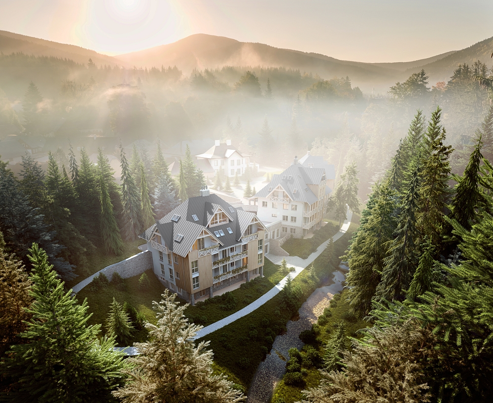 Svoboda & Williams, the project’s exclusive agent, is launching the sale of 39 alpine-style apartments situated in the attractive location of Harrachov, a picturesque resort town in the Krkonoše Mountains. The Trio Harrachov project, which consists of three apartment buildings, will be set in a peaceful valley of the Kamenice River just a few steps from a ski slope, cross-country trails, and bike paths.