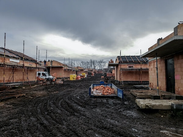 Construction work on the Pálavská brána residential project is proceeding according to plan. All of the houses now have roofs and windows. Interior partition walls are currently being installed and the rough construction phase is only one step away from being complete.