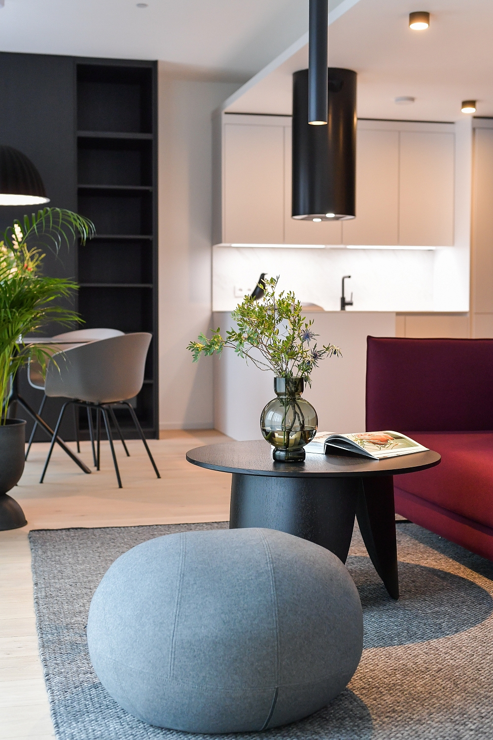 All of the apartments showcase a contemporary, elegant style with a muted color scheme. "Thanks to iconic solitary pieces and their color variations, we ensured that each is distinct and has its own personality," explains Nováková. Sufficient storage space and a feeling of airiness were emphasized in the smaller studios as well. "We frequently added modular furniture that could be used in a variety of configurations, selecting items that can easily be moved to ensure interiors free of clutter," she states. The exclusive supplier of the furniture and lighting is Lino Design.