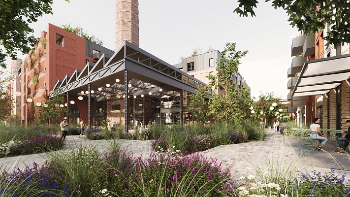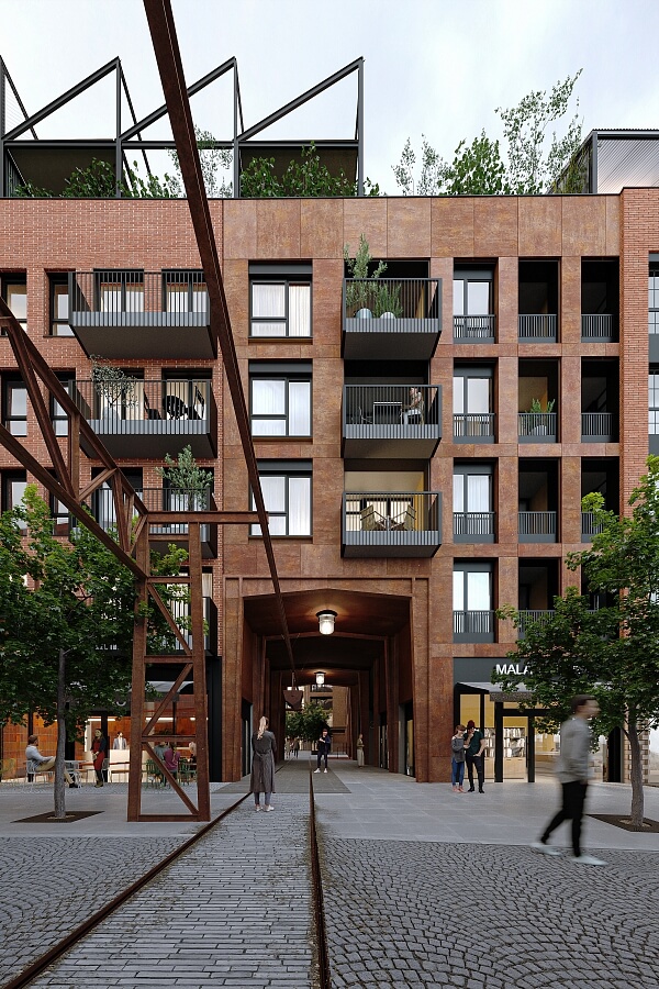 The residential project is being built on the site of one of Prague's largest former distilleries, Fischl and Sons, whose legacy can still be seen in the preserved chimneys, sawtooth roof, and red brick facade. LIHOVAR strives to be the heart and soul of the modern Smíchov Riverside neighborhood. Living here facilitates social interactions and lively events held either in the glazed courtyard, one of the largest food markets in Prague, or one of the art galleries.