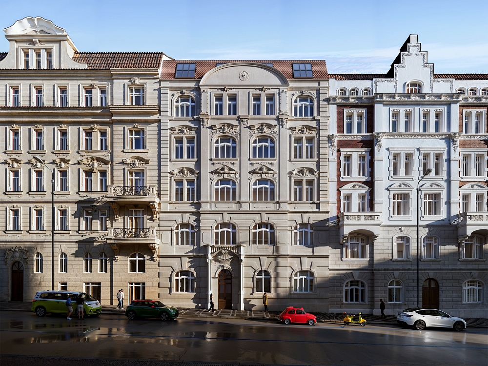 This boutique residential project stands on a quiet side street only a few steps from lively Peace Square, the cultural and social center of Prague’s Vinohrady district. The five-story Art Nouveau building will offer just 2 units per floor. In this early phase, it’s possible to connect them and thereby create a spacious floor-through apartment.