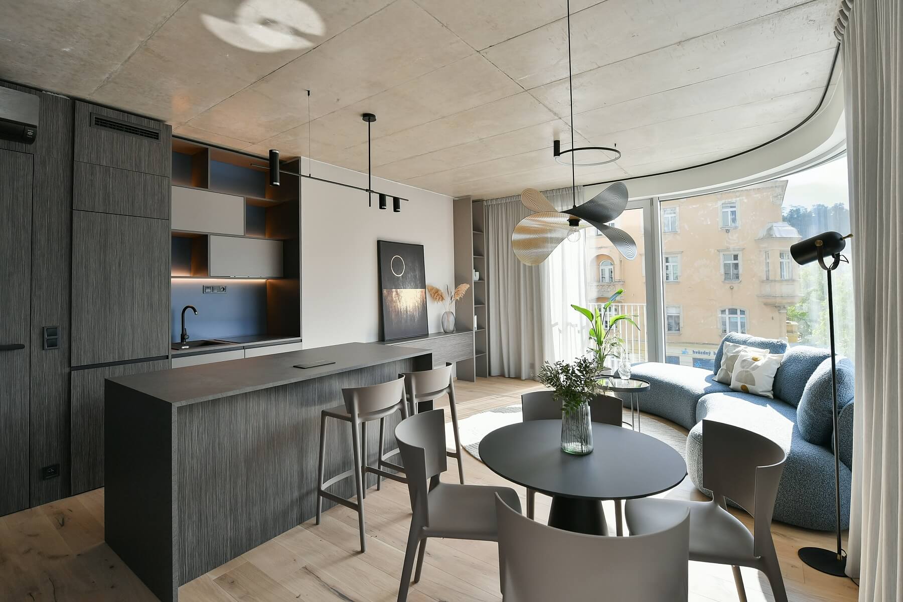 This is a brand new fully furnished 1-bedroom apartment with an enclosed balcony on the 4th floor in the Block Karlín Living residential project with a shared roof terrace, underground parking and a quiet landscaped courtyard. The 7-story building was designed by the renowned Architekti Headhand architectural studio. Located in the popular neighborhood of Karlín, within walking distance of the Invalidovna and Křižíkova metro stations and close to a tram stop. A trendy location with fast connections to the city center offering complete amenities and services. The immediate surroundings consist of a number of modern business and administrative centers as well as a traditional urban development with a cosmopolitan mix of restaurants, cafes, bistros, and shops. The district offers a wide range of opportunities for active pursuits such as tennis courts, golf driving ranges, a bike path, and a number of fitness centers.