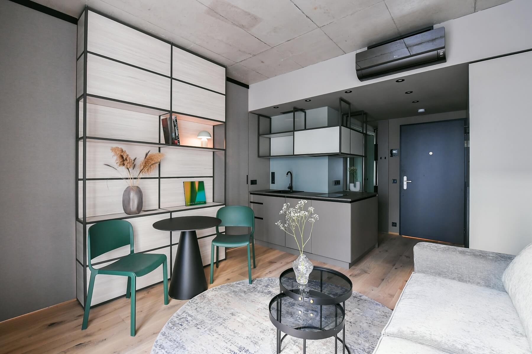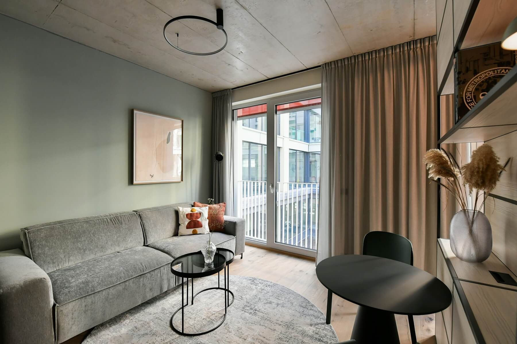 This is a brand new fully furnished 1-bedroom apartment on the 4th floor in the Block Karlín Living residential project with a shared roof terrace, underground parking and a quiet landscaped courtyard. The 7-story building was designed by the renowned Architekti Headhand architectural studio. Located in the popular neighborhood of Karlín, within walking distance of the Invalidovna and Křižíkova metro stations and close to a tram stop. A trendy location with fast connections to the city center offering complete amenities and services. The immediate surroundings consist of a number of modern business and administrative centers as well as a traditional urban development with a cosmopolitan mix of restaurants, cafes, bistros, and shops. The district offers a wide range of opportunities for active pursuits such as tennis courts, golf driving ranges, a bike path, and a number of fitness centers.
