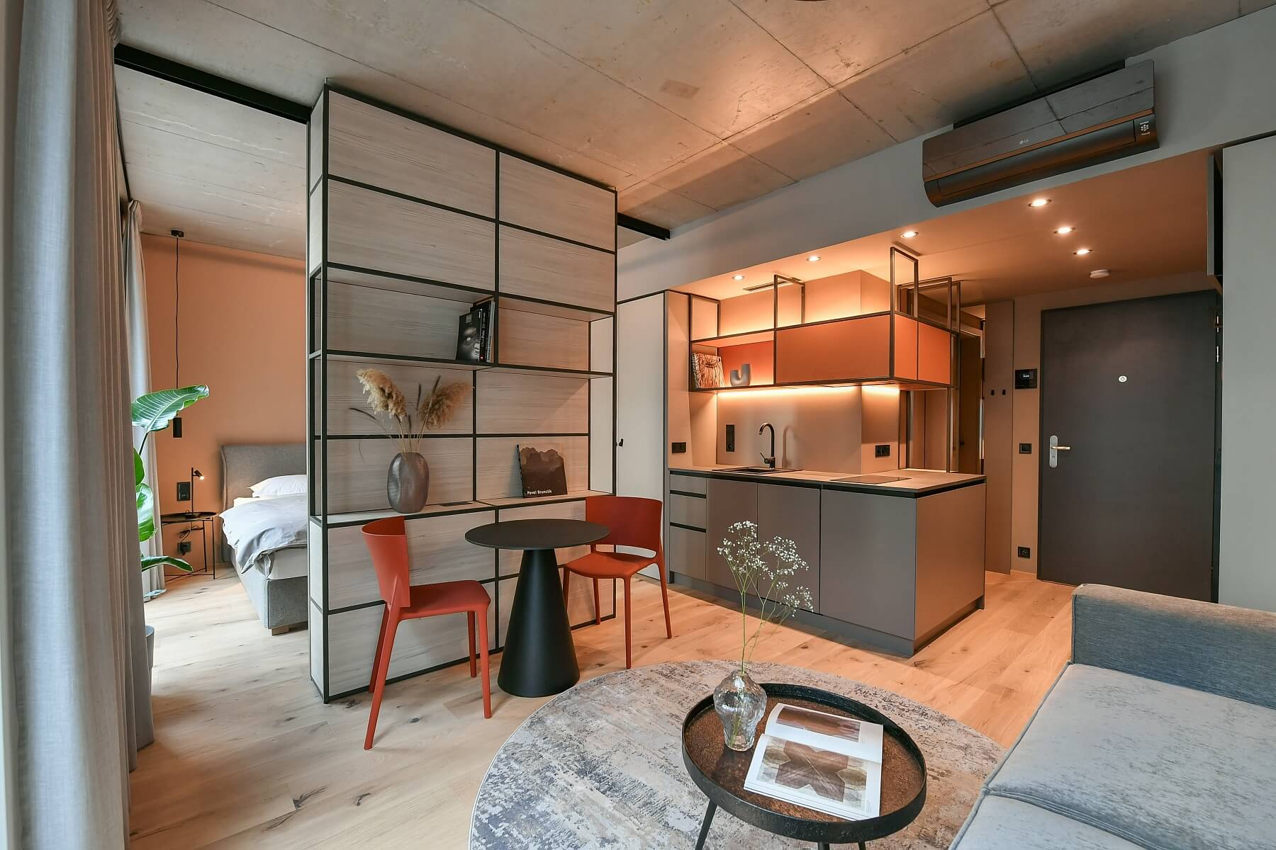 This is a brand new fully furnished 1-bedroom apartment on the 5th floor in the Block Karlín Living residential project with a shared roof terrace, underground parking and a quiet landscaped courtyard. The 7-story building was designed by the renowned Architekti Headhand architectural studio. Located in the popular neighborhood of Karlín, within walking distance of the Invalidovna and Křižíkova metro stations and close to a tram stop. A trendy location with fast connections to the city center offering complete amenities and services. The immediate surroundings consist of a number of modern business and administrative centers as well as a traditional urban development with a cosmopolitan mix of restaurants, cafes, bistros, and shops. The district offers a wide range of opportunities for active pursuits such as tennis courts, golf driving ranges, a bike path, and a number of fitness centers.