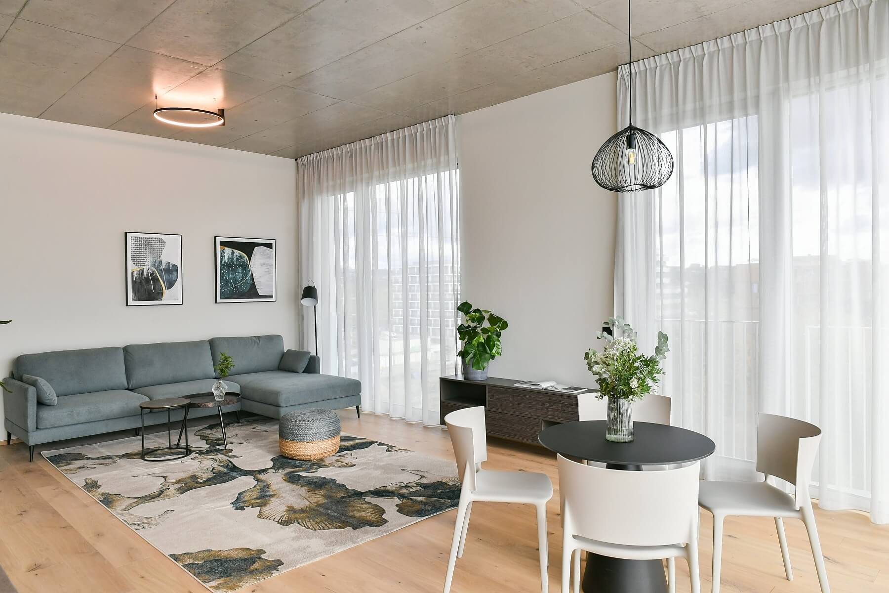This fully furnished apartment for rent with a terrace and 2 bathrooms is on the 6th floor of the newly built Block Karlín Living residential project with a common rooftop terrace, underground parking, and a quiet landscaped courtyard. The seven-story building is designed by the renowned Headhand Architects studio. The new build is located in the popular Karlín district, within walking distance of the Invalidovna and Křižíkova metro stations and close to a tram stop. This trendy area with quick access to the center offers a full range of civic amenities and services. Many modern business centers and pockets of the district’s historic development with a cosmopolitan mix of restaurants, cafes, bistros, and shops are in the immediate vicinity. The neighborhood also offers plenty of fun sports opportunities and grounds, such as tennis courts, golf driving ranges, bike paths, and fitness centers.
