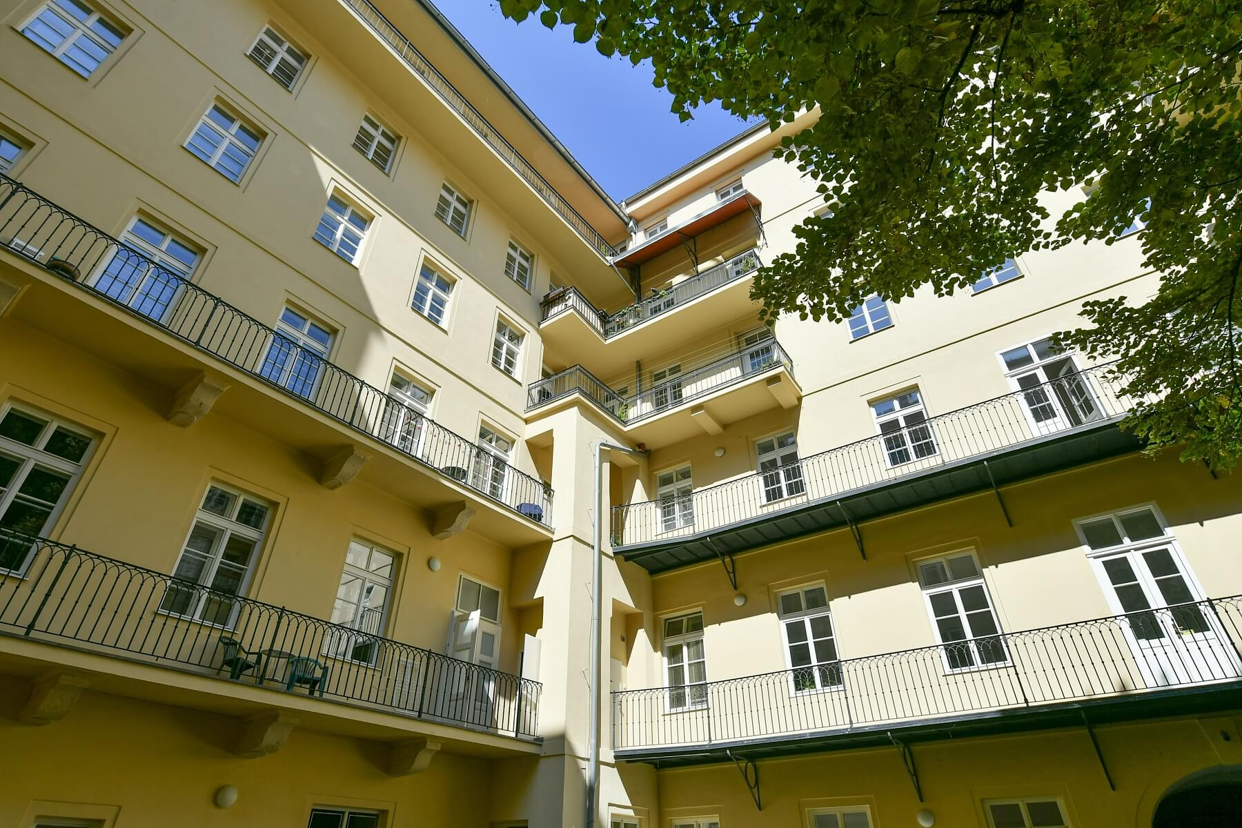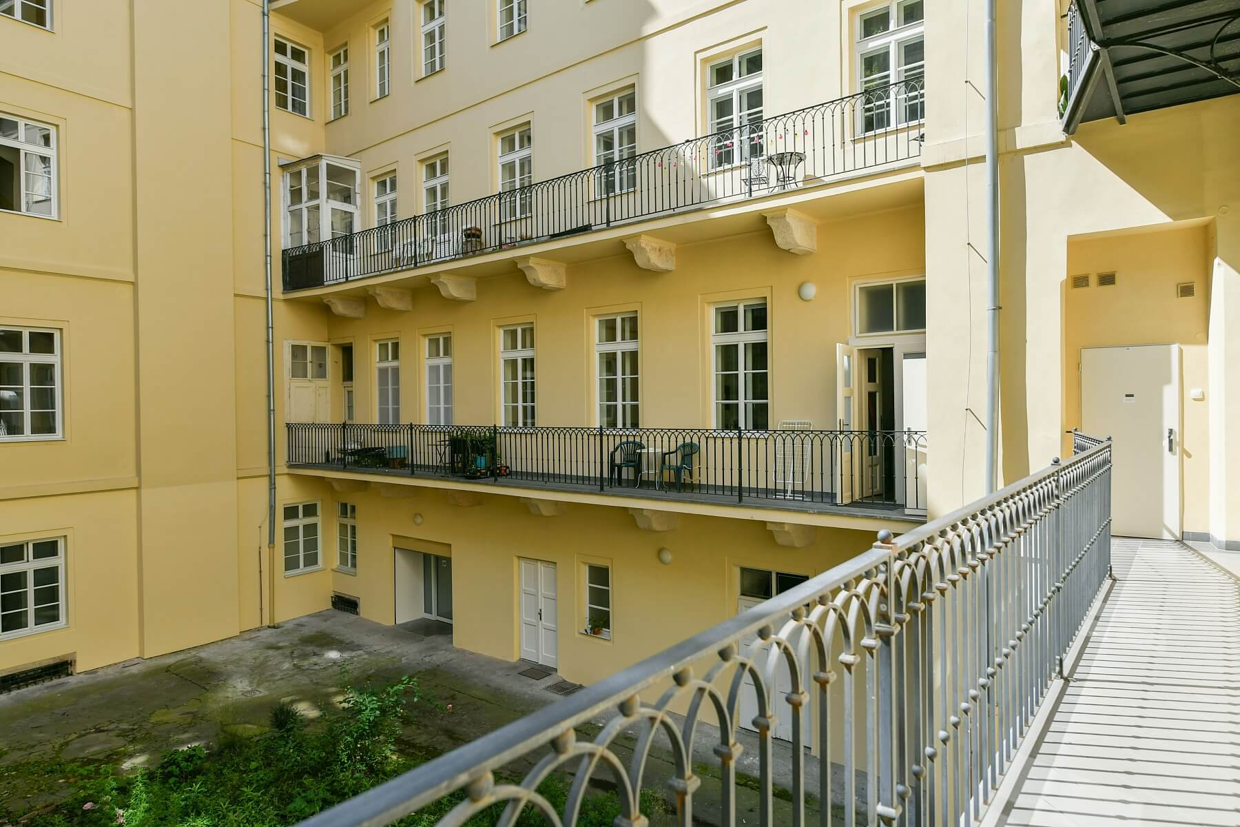 Benefiting from a unique artistic design and a private courtyard terrace, this newly refurbished and furnished industrial style apartment is on the 1st floor of a historic building with an elevator and central inner courtyard with terraces. Conveniently located on a quiet street, away from the tourist routes, in the historic center of Prague, moments from the Vltava riverbank, the National Theater, Žofín Island, Old Town and Malá Strana with all the major historic sights and cultural venues, multiple tram links, and the Národní třída metro station, with full amenities in the immediate vicinity.