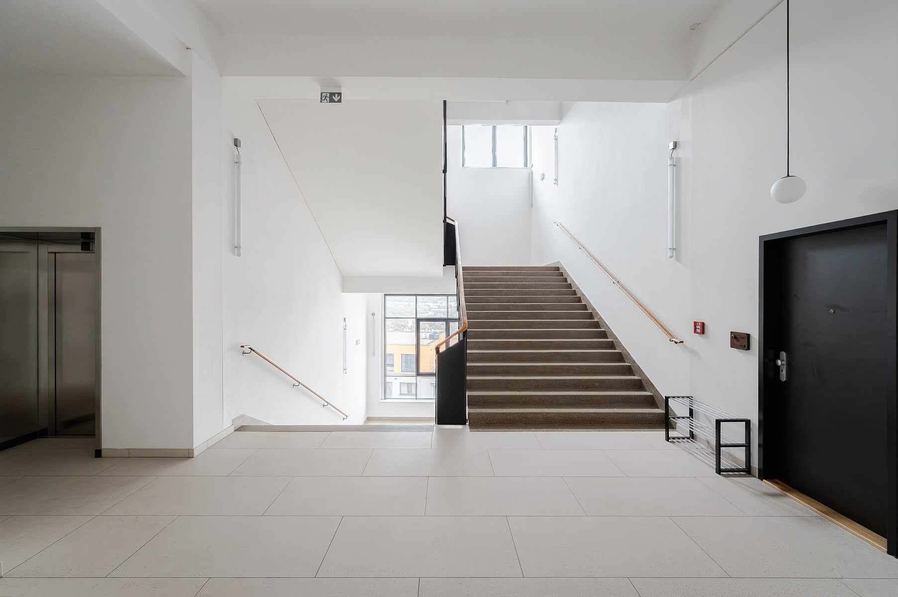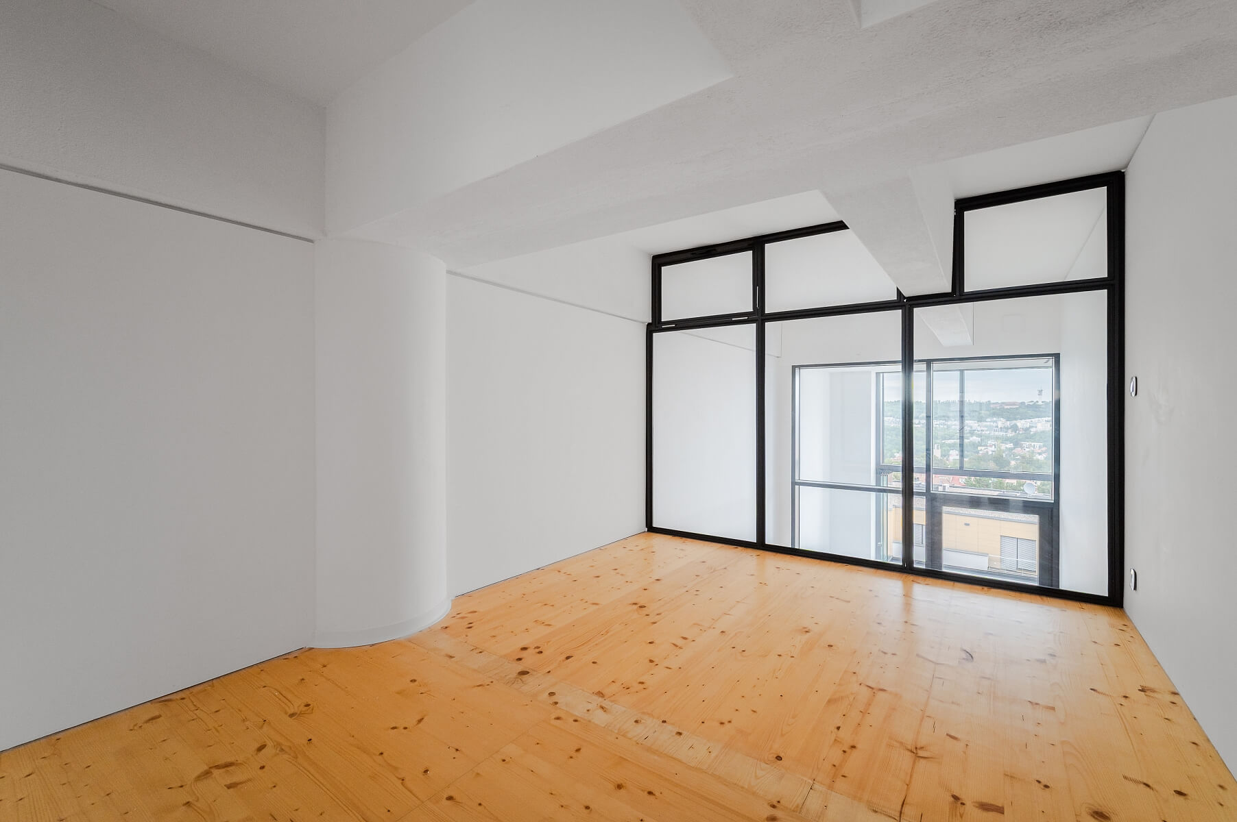 This unfurnished loft type apartment with 2 enclosed balconies is on the 4th floor of the recently built PARVI Cibulka residential project on the site of a former industrial hall. Amenities include a 24/7 reception and security, a fitness center, and a green park in the courtyard. Located on the very edge of the Vidoule nature preserve, near the Cibulka forest park, in a quiet residential area within easy reach of full amenities and services. Close to the Jinonice metro station, Cibulka train station with connections to Anděl and the city center, and within quick reach of the Anděl/Nový Smíchov commercial center. Conveniently located for the German School.