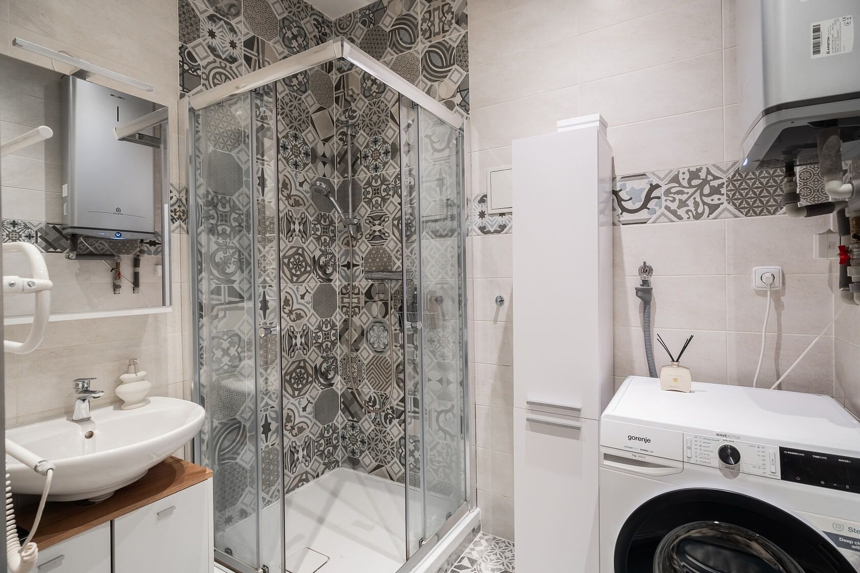 Renovated solid wood parquet floors, laminate floors, tiles, brand-new electric boiler, cellar.
