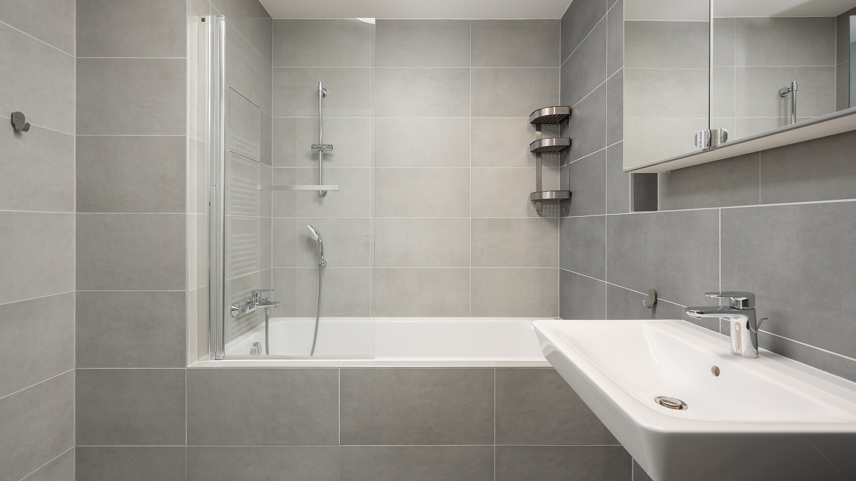 The interior consists of a living room with access to one of the enclosed balconies, a fully fitted separate kitchen, two bedrooms – each with its own enclosed balcony, a bathroom with a bathtub, a separate toilet, a spacious entrance hall, and a utility room.