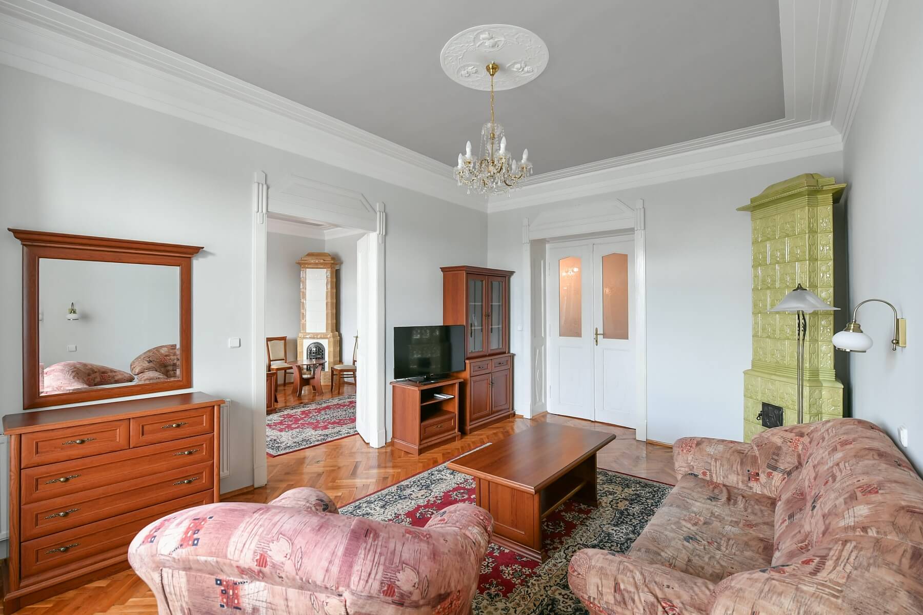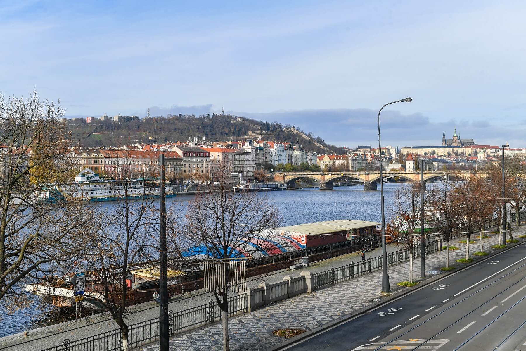 Boasting lovely views of the Vltava River and Prague Castle, this fully furnished renovated 2-bedroom riverfront apartment with a balcony and preserved original details is situated on the 1st floor of a refurbished Art Nouveau building (1913) with an elevator. Set right on the Vltava riverbank, a few steps from the popular Rašínovo nábřeží embankment, near Vyšehrad Castle, just moments from Palackého Square with a metro station and multiple tram links. A location with full amenities in the area, convenient for the French School.