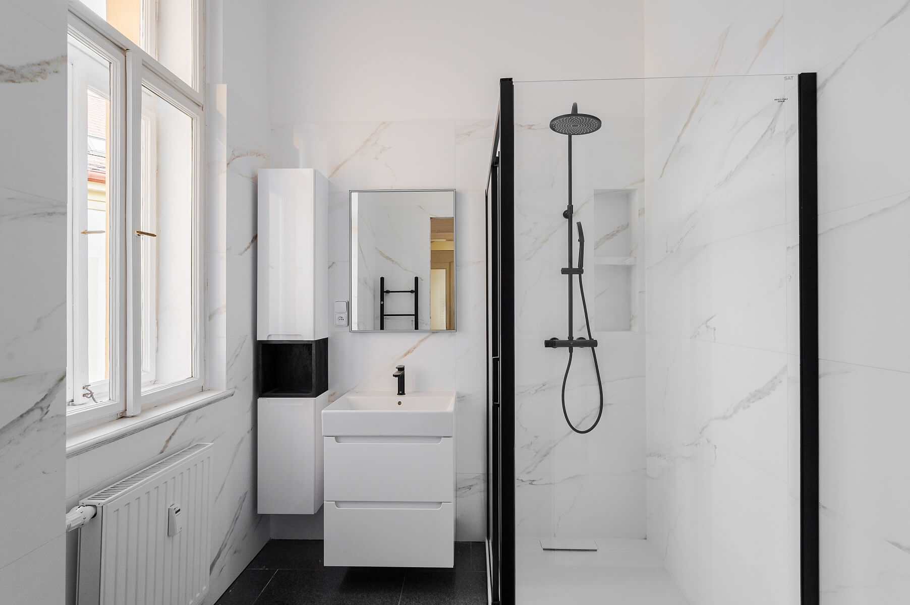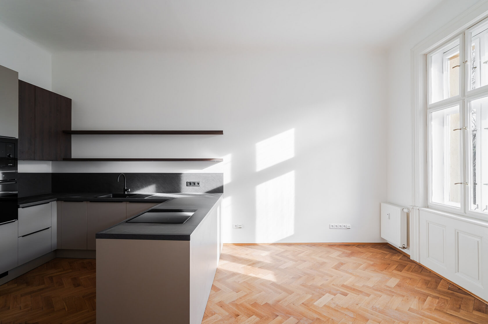This fully refurbished unfurnished 1-bedroom apartment on the second floor of a newly renovated residential building with numerous charming preserved original architectural details and no elevator is located in a residential neighborhood in Nusle near the Botič stream, mere steps from Náměstí Bratří Synků Square with tram stops and full amenities within easy reach. Conveniently located for the Arkády Pankrác shopping center, Pankrác business center, Jezerka Park, and Divadlo Na Fidlovačce Theater, just a short drive to the city center.