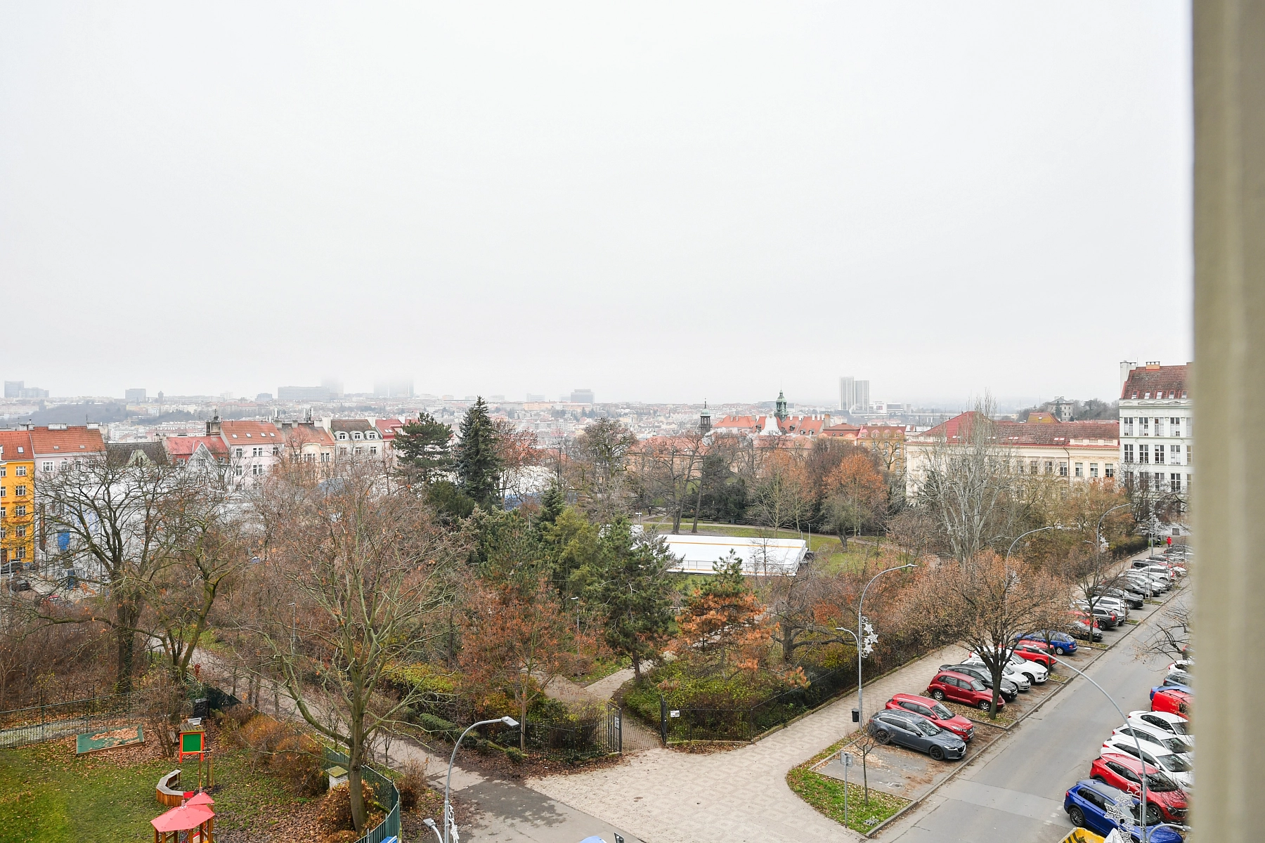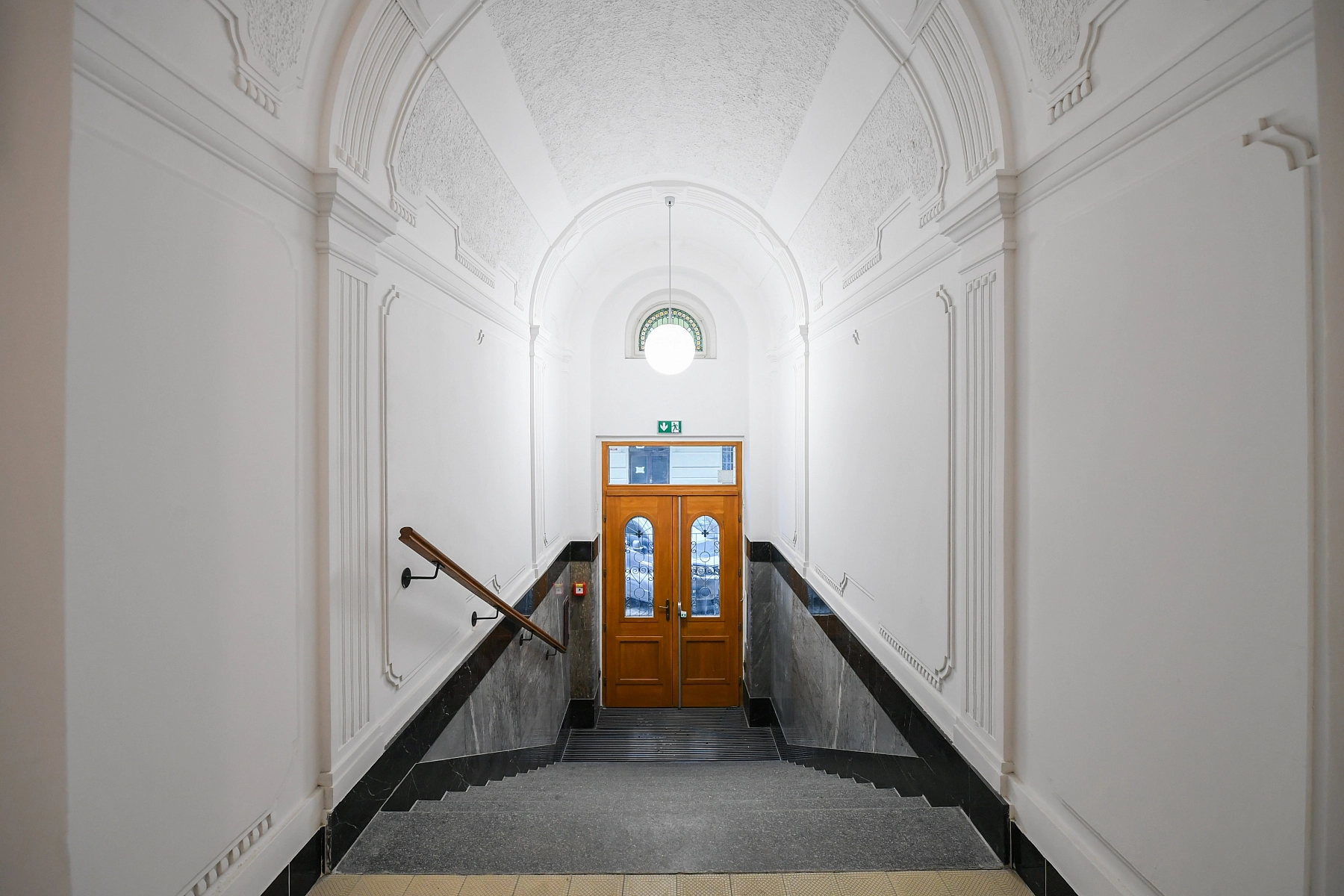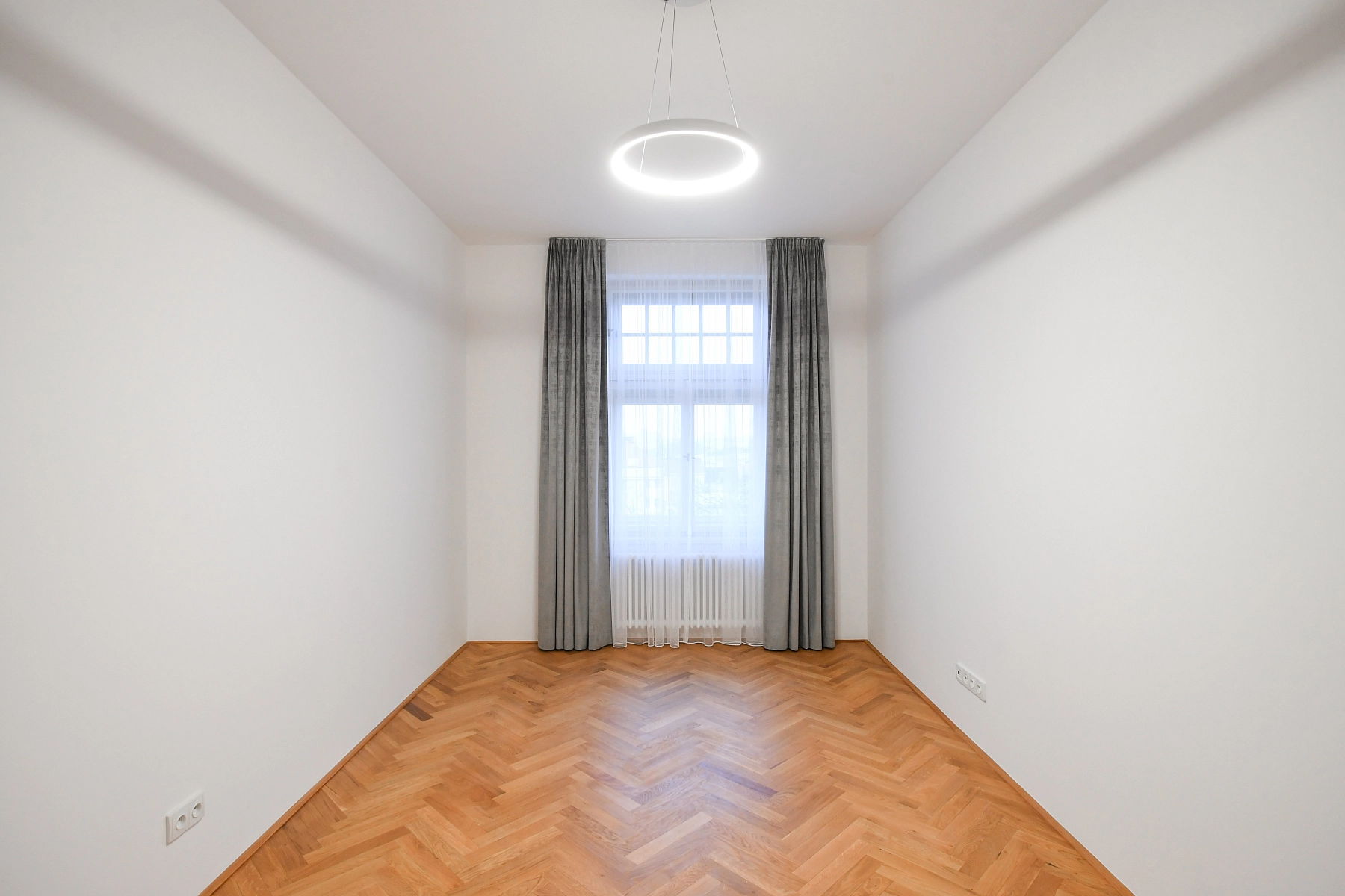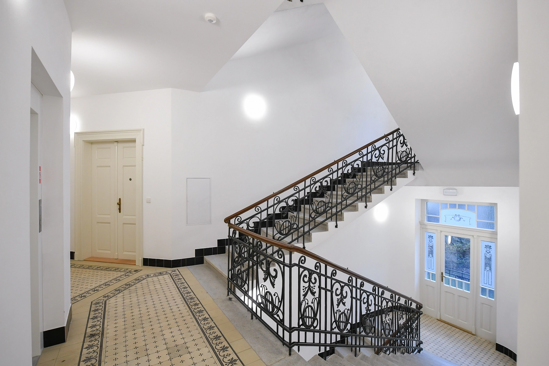 Benefiting from far reaching views, this is a newly refurbished unfurnished 2-bedroom corner apartment on the third floor of the Norská Residence - a newly meticulously renovated Art Nouveau building with a lift and preserved original architectural features. Situated just steps from the Heroldovy sady park and residential area with 1930's villas in Vršovice, Prague 10. The location offers a wide range of amenities, cultural venues and a lot of places for relaxation. The city centre and the Flora shopping mall are accessible within 10 minutes, a tram stop is located just a few minutes from the building.