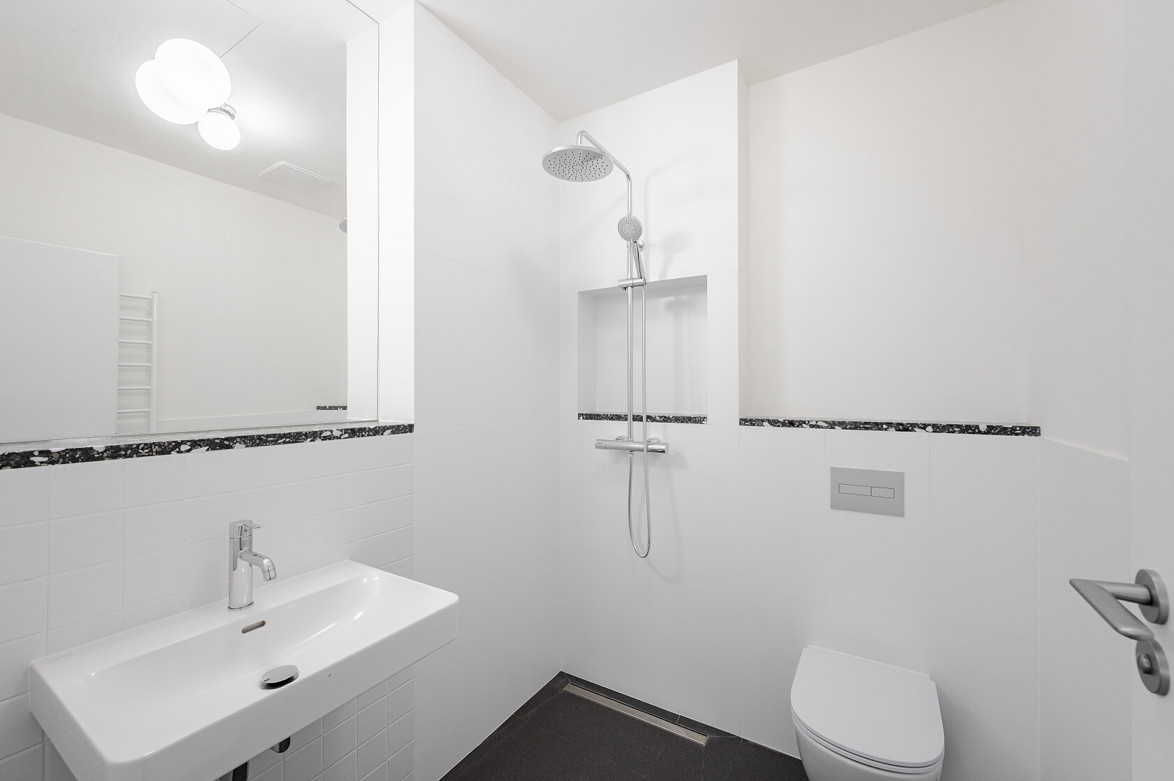 This brand-new unfurnished 1-bedroom loft style split-level apartment with green views of the Krč forest is on the 2nd floor of a newly-built energy-efficient apartment building with advanced technologies and a shared garden. Set in a quiet residential neighborhood with complete amenities and good transport accessibility, in close vicinity of the Budějovická metro station (10 min. walk). Conveniently located for numerous Prague 4 business and commercial facilities. A few steps away is a bus stop, and there are many sports facilities, restaurants, and services in the area.