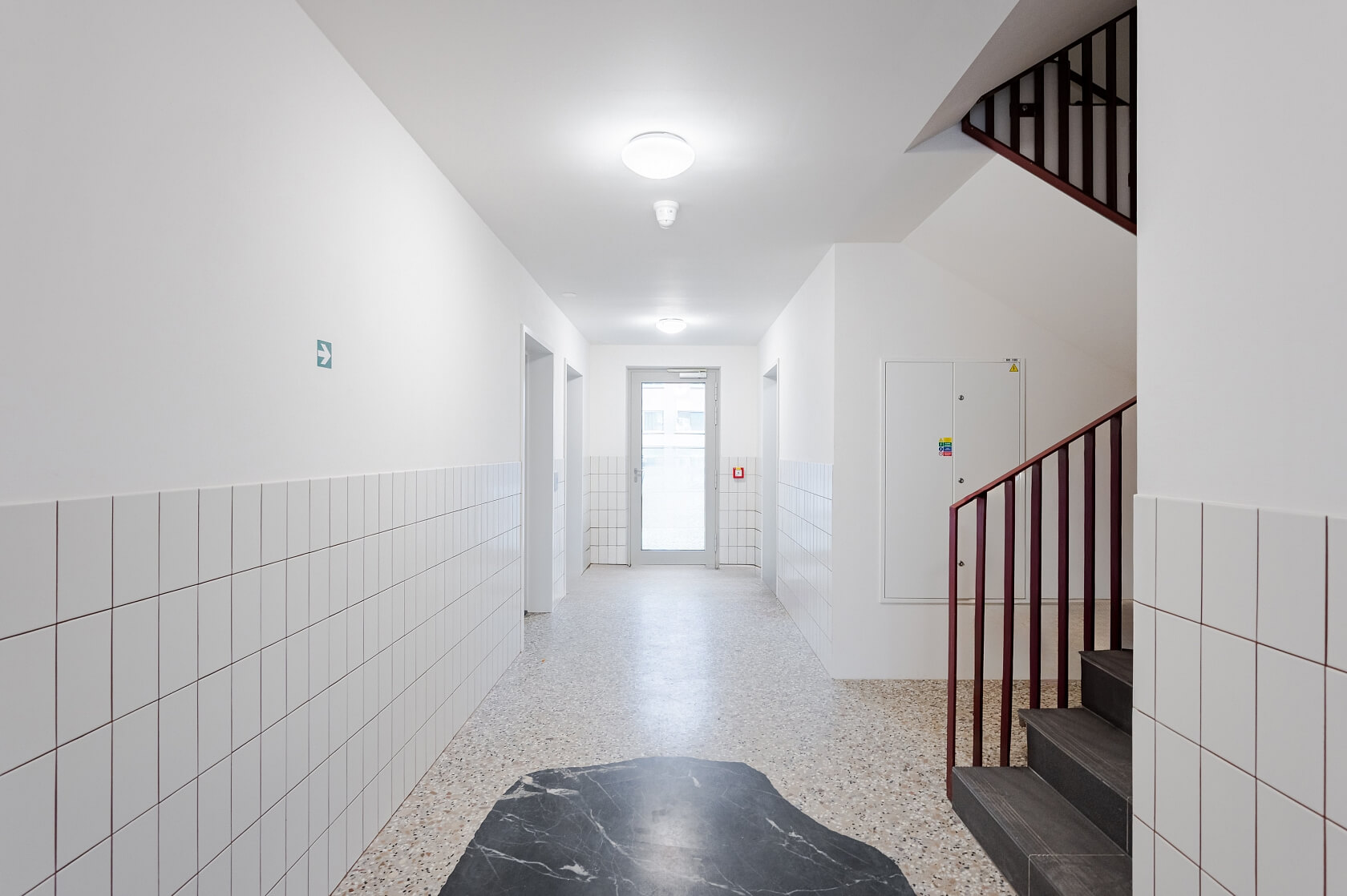 Heat recovery ventilation, Loxone smart home system, vinyl floors, tiles, security entry door, aluminum soundproof windows, automatic roller blinds, heat pump, ceiling heating and cooling, water filtration system, Laufen sanitary ware, Siemens kitchen appliances, dishwasher, induction stove top, rain water irrigation, geothermal well, compost bin, benches and barbecue spot in the garden. No lift. Parking is available at CZK 2,500/month - subject to availability.
