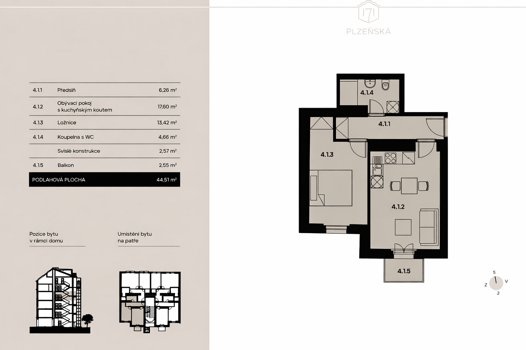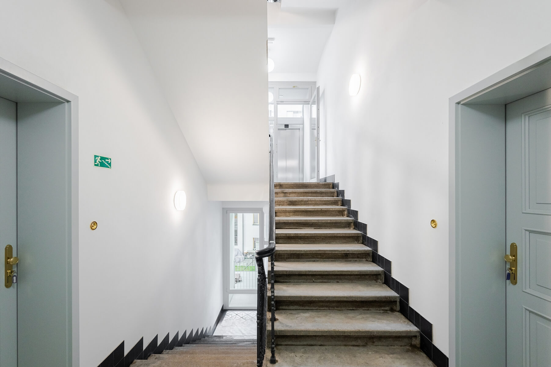 This unfurnished 1-bedroom apartment with a balcony facing the courtyard is on the 3rd floor of a fully refurbished apartment building: the Plzeňská 171 residential project in Košíře, Prague 5. Located within easy reach of the Košíře-Motol and Skalka parks, as well as Klamovka Garden Park. Excellent transport accessibility is ensured by a tram and bus stop just moments from the building. The Anděl metro station and commercial district, and the Nový Smíchov shopping mall are reachable in 6 minutes by car or 10 minutes by public transport.