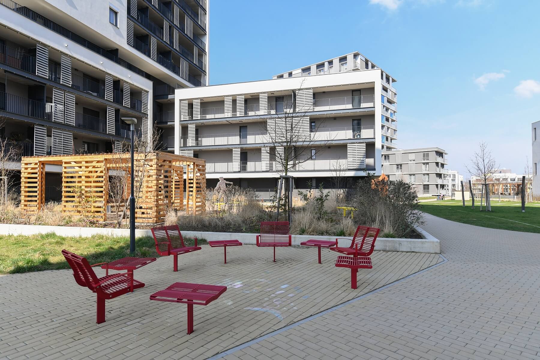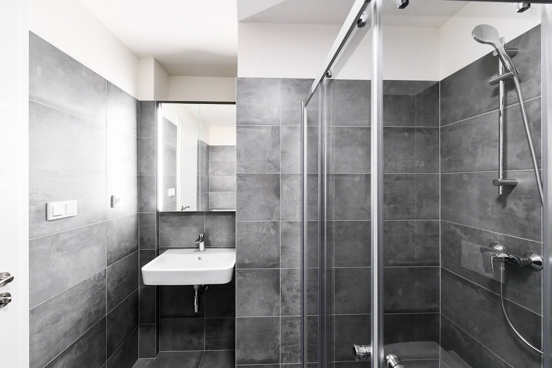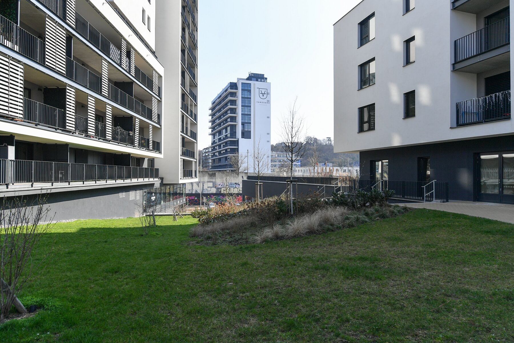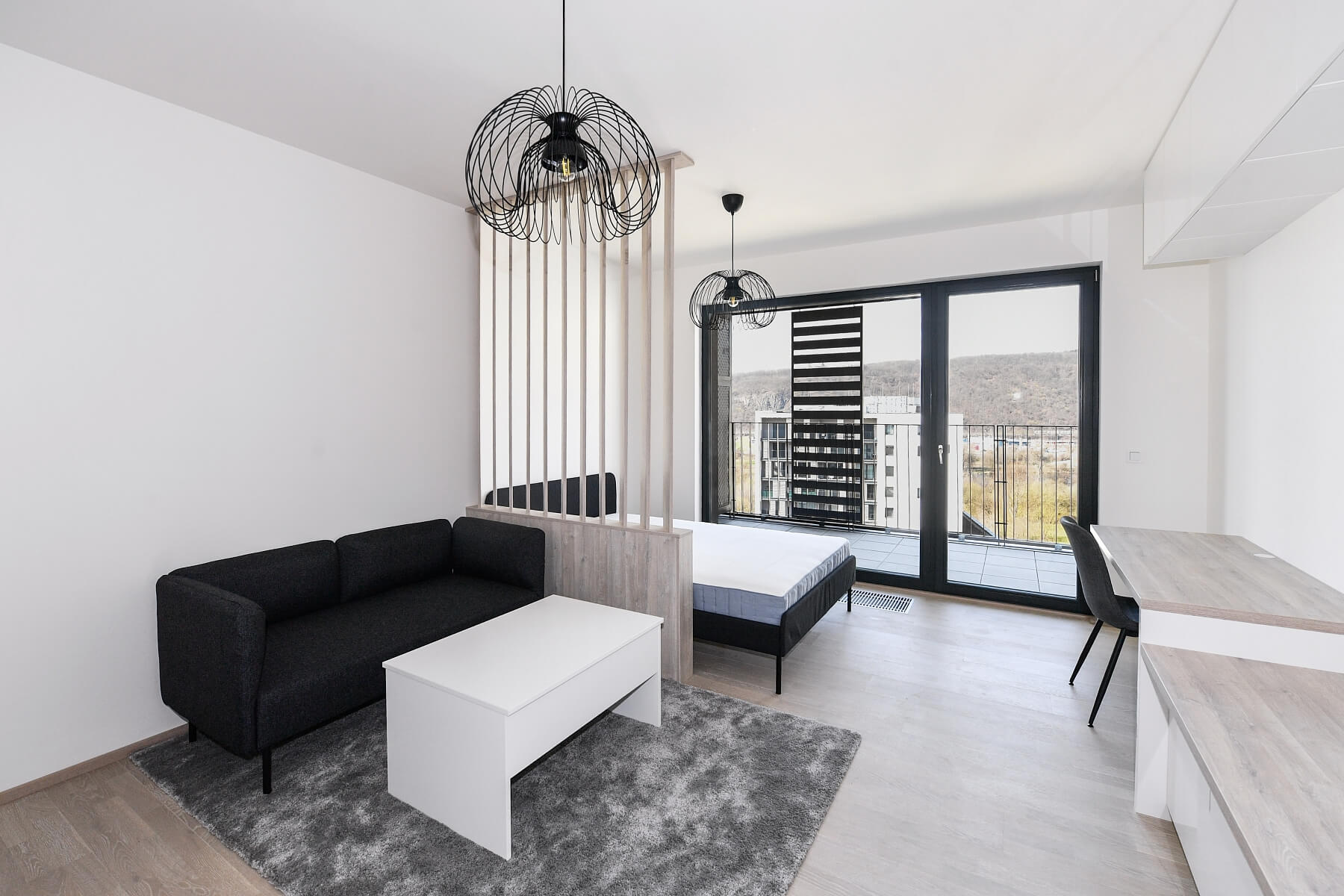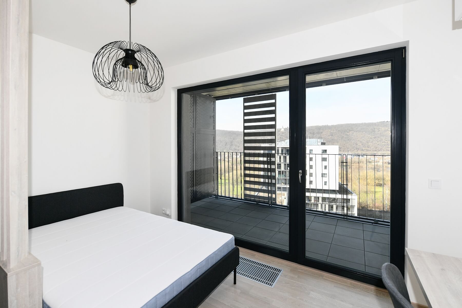This fully furnished studio apartment with an enclosed balcony and beautiful far-reaching views of the river and adjacent golf course is situated on the 10th floor of the Zahálka Residence—a modern building that is part of a residential complex with a public park in Modřany, Prague 4. The location has been revitalized and transformed into a modern district with full services and amenities. Set in the immediate vicinity of a Tesco shopping center plus a cafe and a restaurant, a freestyle park, a rope center, tennis courts, a bike path along the Vltava River (25 minutes to the city center), and an in-line track. A tram and bus stop with frequent connections to the city center is only a 5-minute walk from the building.