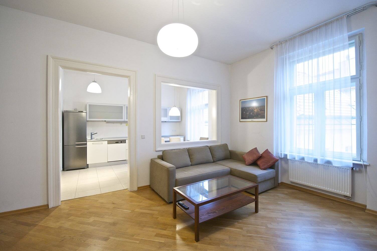 Fully reconstructed partly furnished 2-bedroom 2-bathroom flat with preserved original features on the 3rd floor of a completely renovated building with a lift. Located right in the city center, in a quiet area, within easy reach of restaurants, shops, and public transportation. Just a few minute walk to the Náměstí republiky and Florenc metro stations, the Hilton Hotel, and the largest Czech shopping mall - Palladium. Swimming pool and fitness center a two minute walk, Štvanice tennis courts close by.