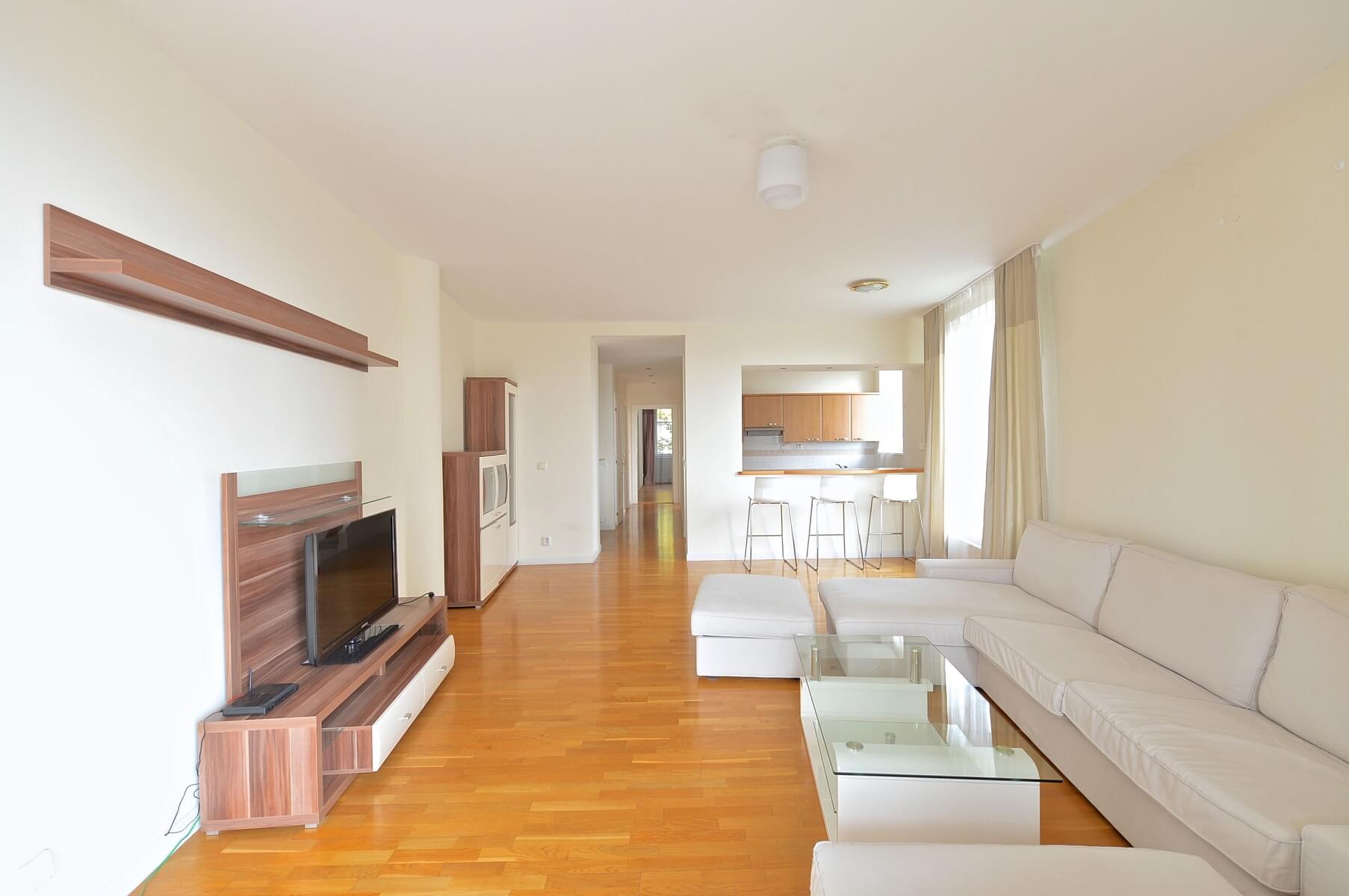 Solid wood parquet floors, large windows, security entry door, washing machine, dishwasher, dishes and kitchenware, TV, audio entry phone, chip entry to the building, basement storage unit. One garage parking space included. Common building charges and deposit for utilities CZK 8670/month.