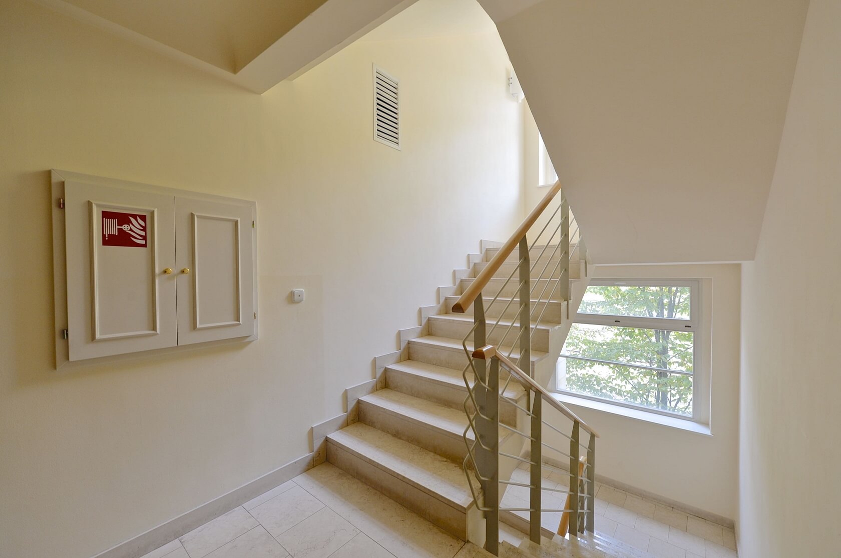 Fully furnished 2-bedroom 2-bathroom flat with a balcony and nice views of Prague, situated on the first floor in a modern gated residential project with underground parking. Located in the immediate vicinity of the French School and Petřín Hill Park, with quick access to shopping and metro, within easy reach of the Prague Castle as well as the city center. Building amenities include fitness, sauna, 24-hour reception, private security and a garden with a playground for children.
