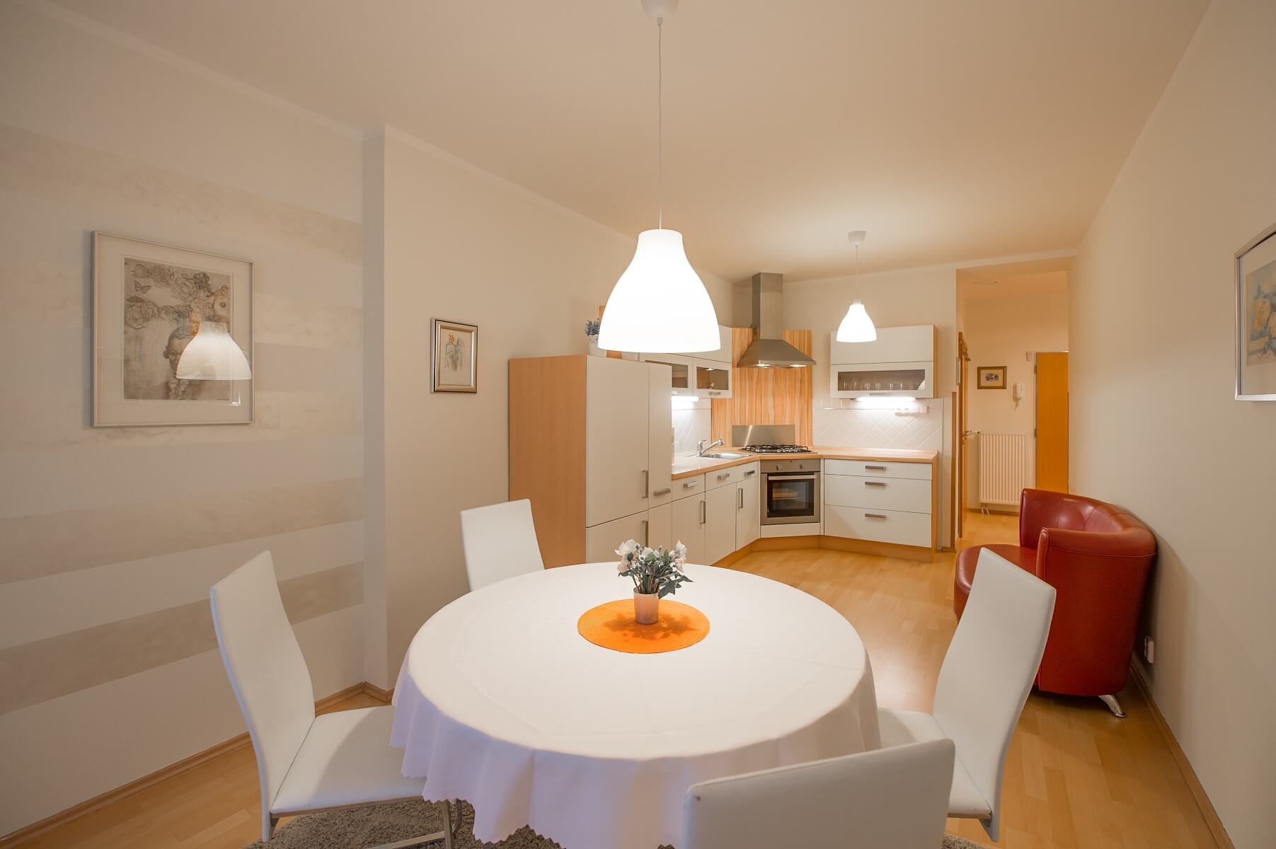 Furnished 1-bedroom flat, situated on the second floor of a renovated residential building with a new lift in Holešovice, Prague 7. Great location just moments from the largest park in Prague - Stromovka, within walking distance of the Vltava riverbank and another large park - Letná. Full amenities in the neighborhood, a few blocks from Vltavská metro station, and a few tram stops from the historic Old Town and the city center.