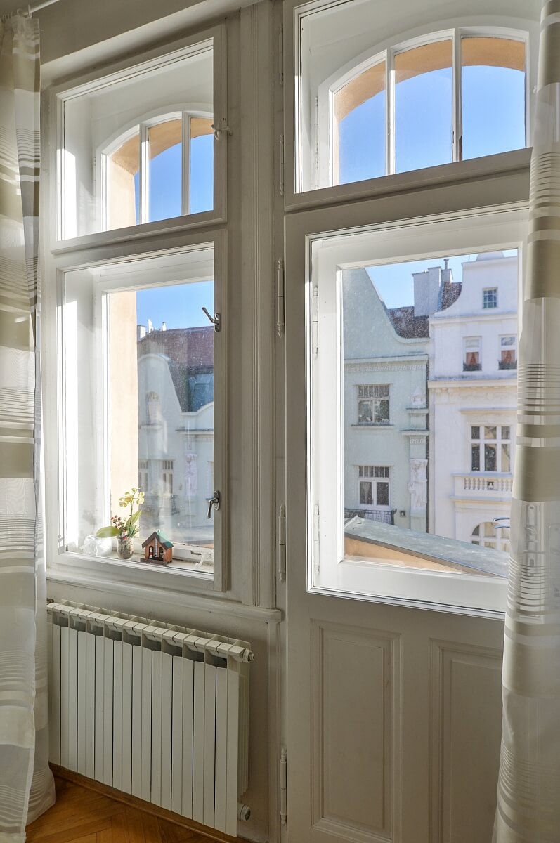 Airy rooms, high ceilings, large windows, solid wood parquet floors, tiles, security entry door, central gas heating, dishwasher, camera system. Monthly deposit for common building charges, water and heating CZK 3000/month. Electricity is billed separately (transfer to the tenant). UNFURNISHED despite the photos.