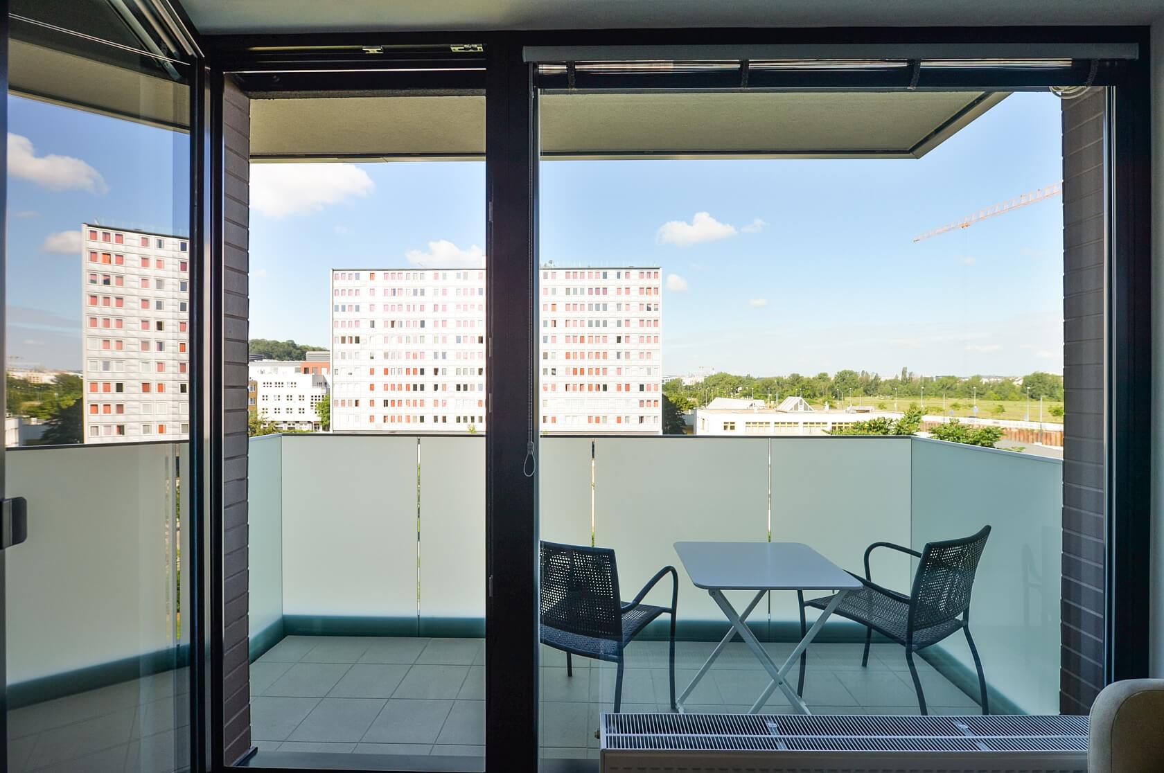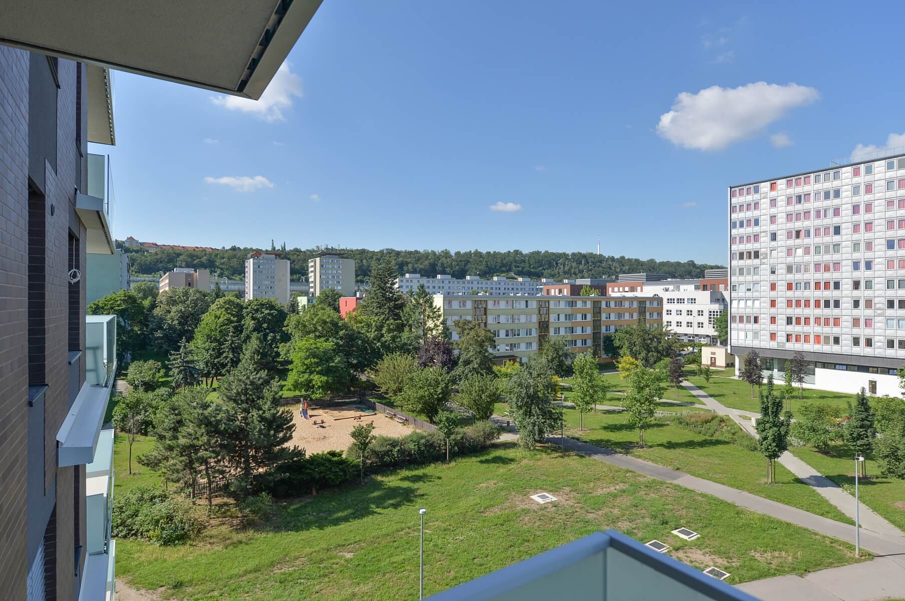 Brand new contemporary furnished 1-bedroom flat with a balcony and green views, situated on the fourth floor with lift in the newly built Karlín Park residential project, with underground parking. Located in a quiet part of Prague 8 with quick connections to the city center, a few blocks from Invalidovna metro station, near several parks and children's playgrounds, in the immediate vicinity of the local golf club and tennis courts.