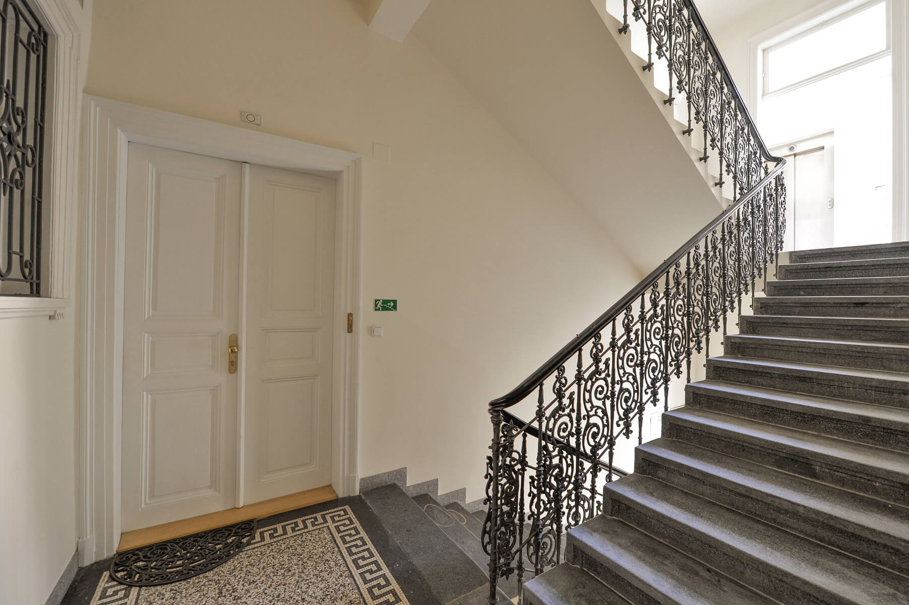 This renovated unfurnished 2-bedroom 2-bathroom apartment with two balconies is set on the second floor in a fully refurbished classic late 1890's apartment building with a new lift. Centrally located steps from the historic Clementinum building and Staroměstská metro station and tram stop, two blocks from the Old Town Square, one block from the Vltava riverbank and within walking distance of major historic sights in Prague.
