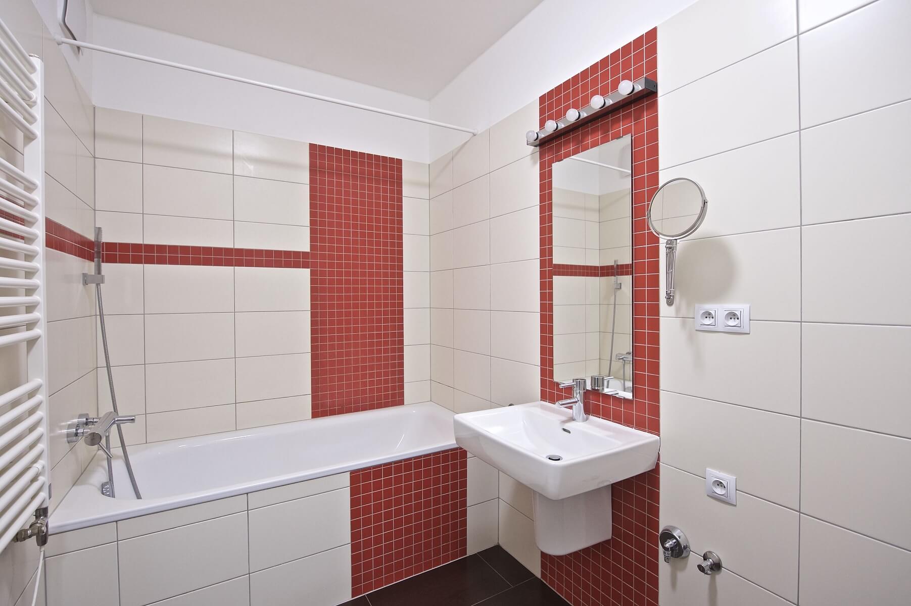 Oak wood mosaic floors, quality fixtures and fittings (Grohe, Laufen, Kaldewei), dishwasher, washer, built-in wardrobe in the bedroom, UPC cable (for TV and the Internet), security entry door. One underground garage parking space included. Service charges and utilities approx. CZK 4000/month. Electricity are billed separately.