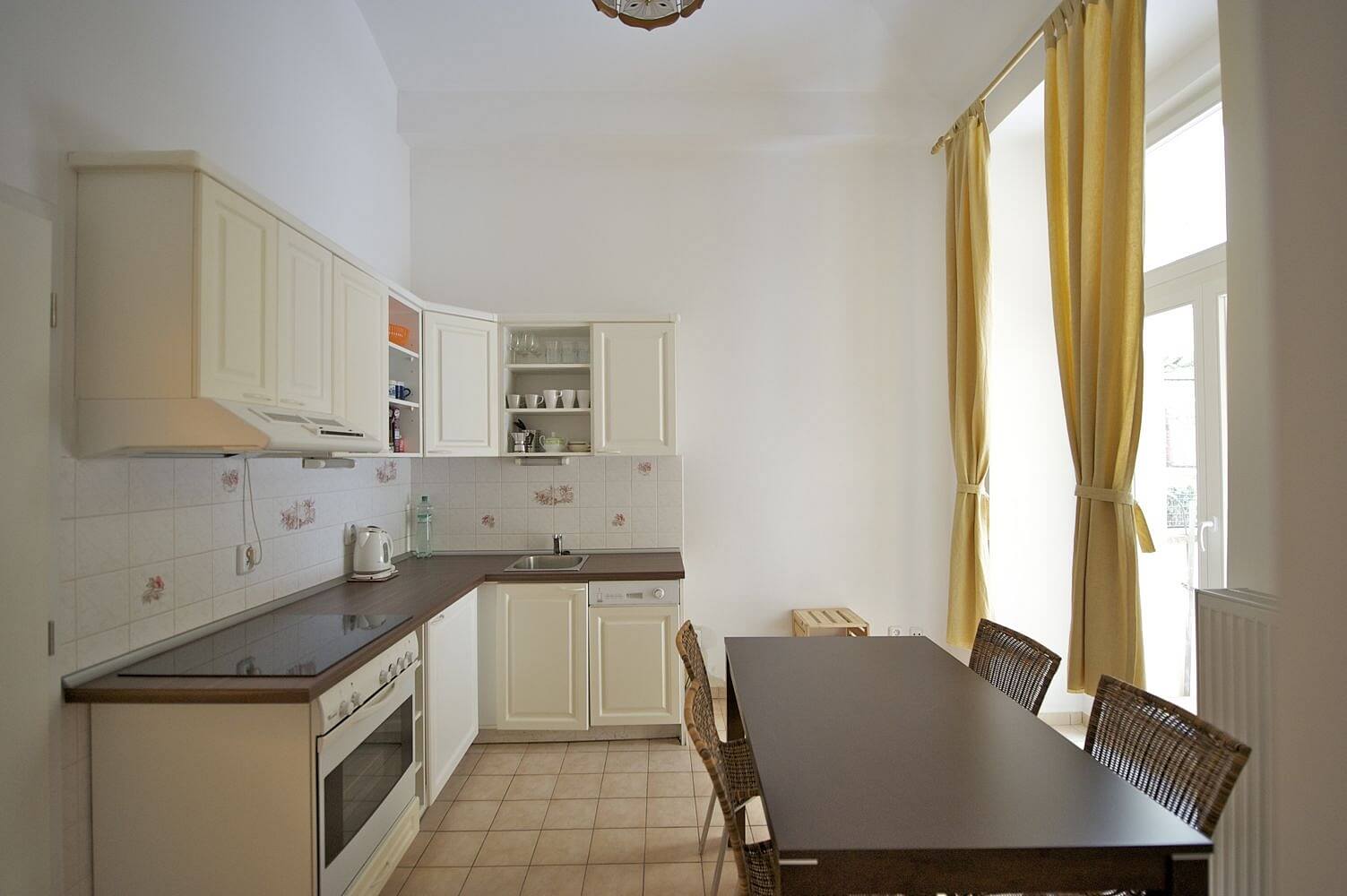 Reconstructed fully furnished 1-bedroom flat with balcony and windows facing the courtyard garden, on the ground floor of a reconstructed building with lift and reception. Quiet location on a lovely tree-lined street, about a 10 minute walk to Wenceslas Square.