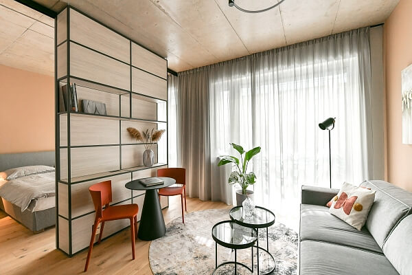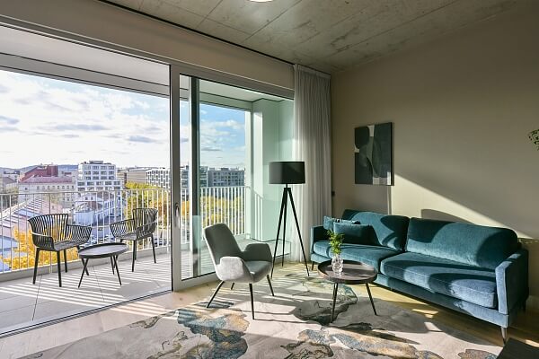 Block Karlín Living is a new rental housing project that offers fully furnished studio to three-bedroom apartments. The units with efficient layouts and loggias and terraces are spread out over the seven floors of a new building designed by the renowned Headhand Architects studio.