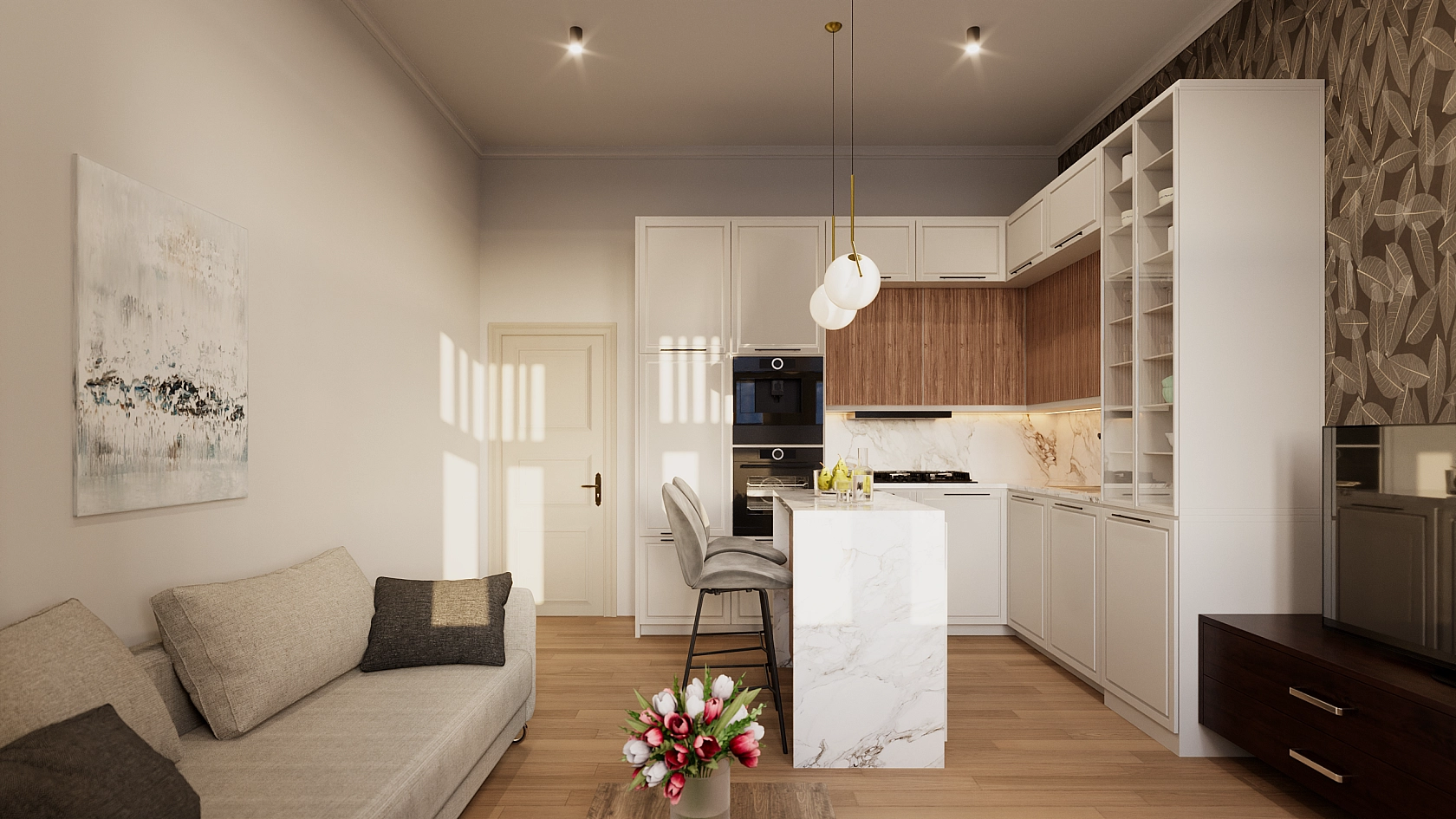 This new one-bedroom apartment with views of a green hillside is located on the 1st floor of a thoroughly renovated apartment building with an elevator. The Plzeňská 171 residential project, situated in Prague’s Košíře district, meets modern standards for high-quality living in a sought-after location with all amenities within easy reach.
