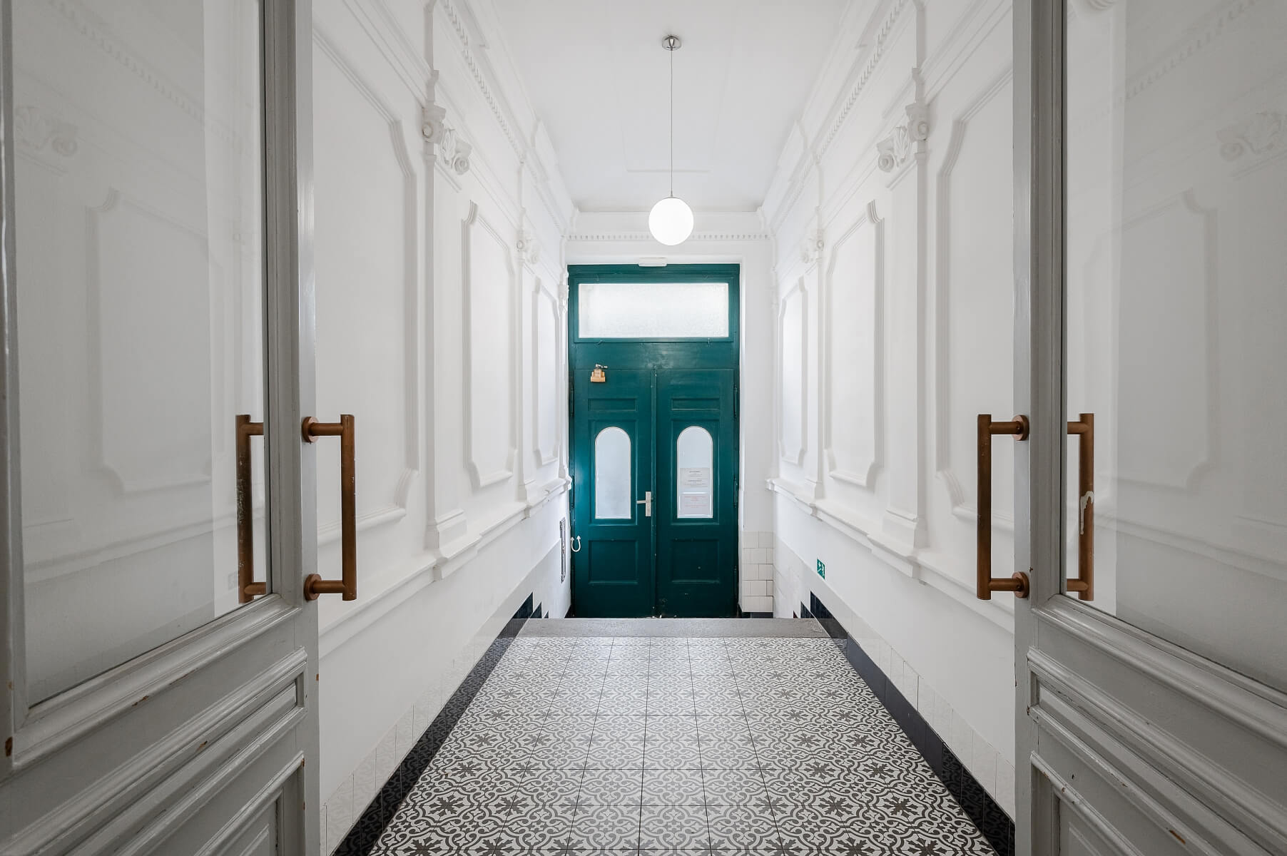 This renovated apartment with high ceilings is part of a beautifully restored Art Nouveau residential building in a prime Vinohrady location, a few steps from expansive and romantic Grébovka Park.