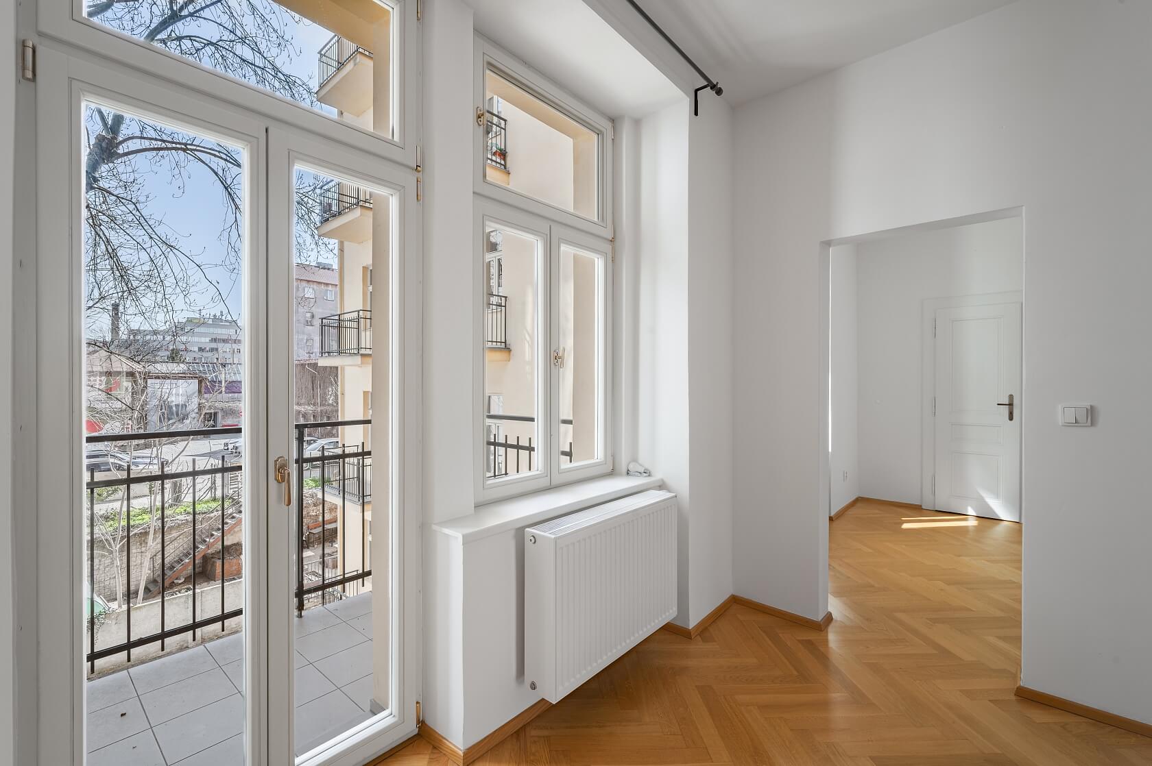This apartment with high ceilings is part of a residential building located on a side street in an attractive and easily accessible area by the Vltava River in Prague 5 – Smíchov, close to Císařská Louka Island with its many sports and leisure opportunities.