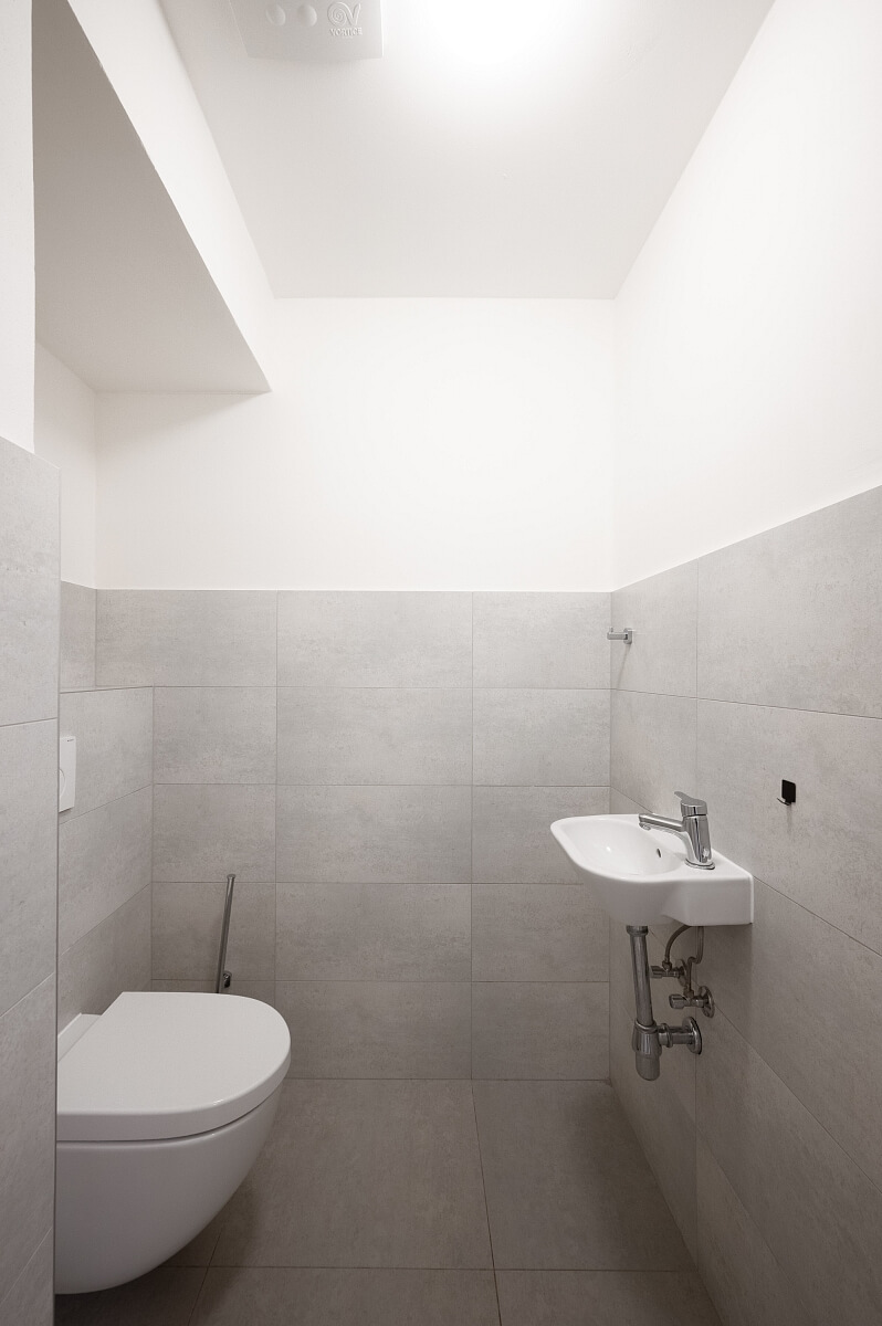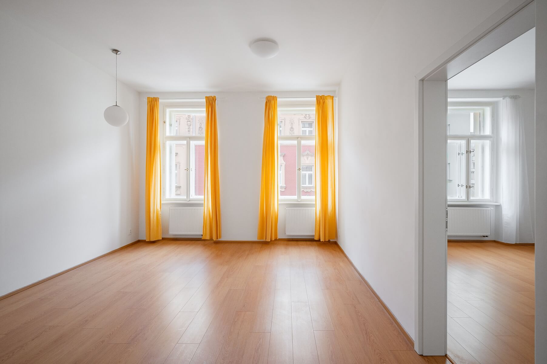 This three-room apartment with a balcony overlooking a quiet inner courtyard is on the 2nd floor of the Svornosti Residence, located in the central part of Smíchov, within walking distance of the Anděl metro station, tram stops, and a wide selection of restaurants, cafés, and shops.