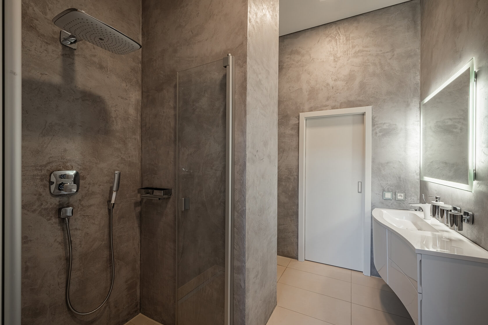 The main living area of the apartment is located on the entrance level, the 6th floor, and consists of a living room with a fireplace, a dining area, and a fully equipped kitchen. The space is complemented by a minimalist bar and a wine cellar. The private section on one side of the apartment includes a master bedroom with an en-suite bathroom (bathtub, shower, sink, toilet) and built-in wardrobes, while the opposite side features two additional bedrooms and a shared bathroom (shower, sink, toilet). The entrance hall also has access to a utility room, a separate toilet, and an interior staircase leading to the upper floor, which forms an open gallery currently used as a study.