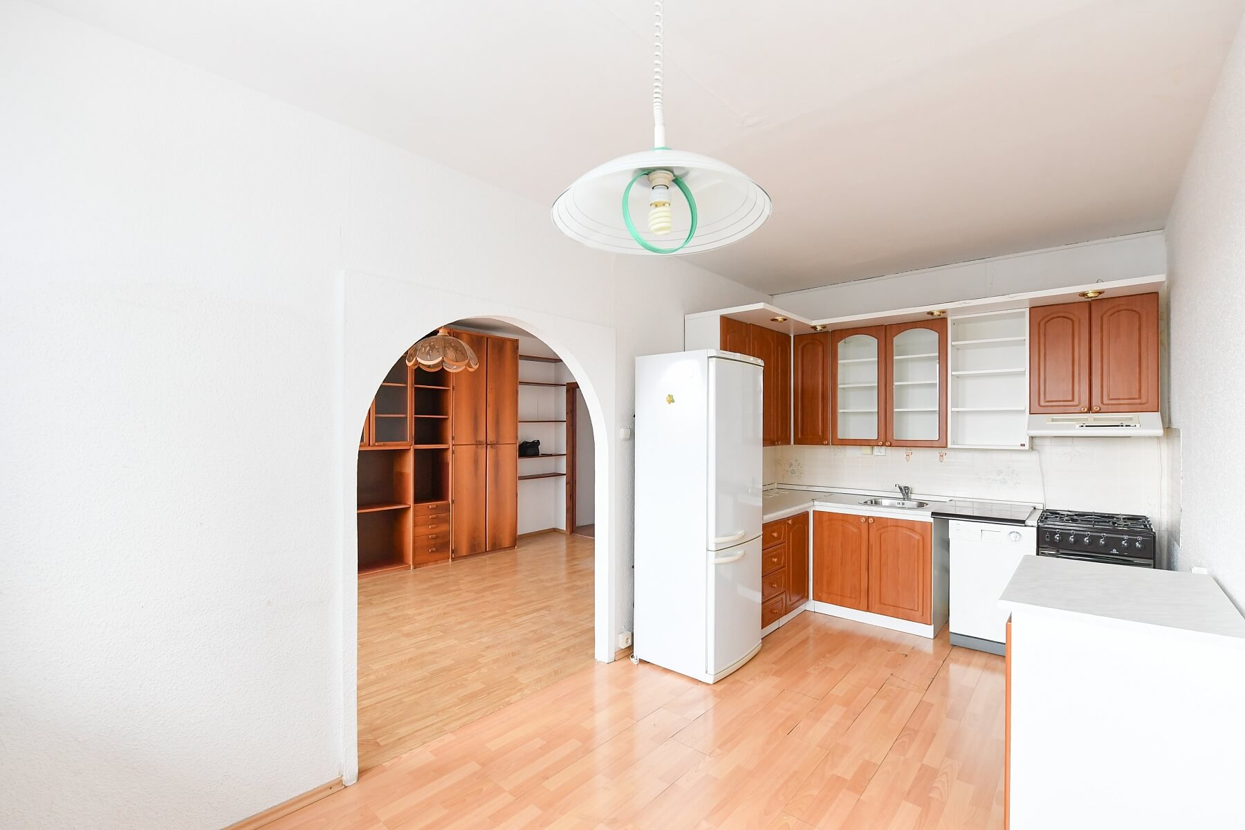 This three-room apartment with a loggia and views of the treetops is situated on the 2nd floor of a panel building in Praha 8 – Kobylisy, close to the Ládví metro station, in a neighborhood offering complete essential amenities within easy reach and plenty of greenery.