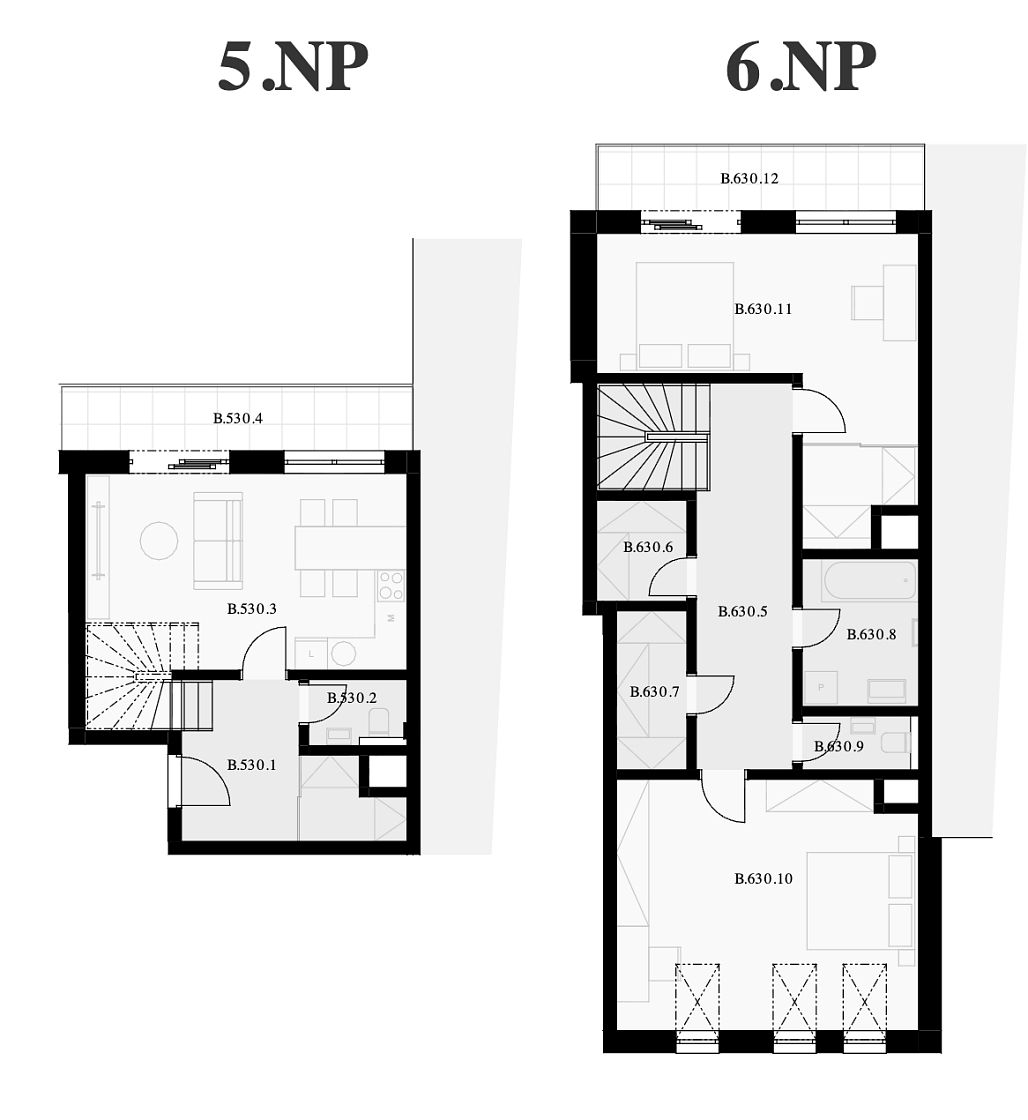 Two-bedroom duplex apartment, 4th+5th floors, B30