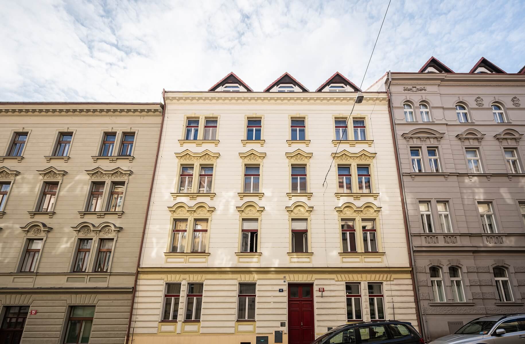 This prestigious part of Vinohrady offers complete civic amenities, including a wide selection of restaurants, bistros, cafés, and cultural and social venues. Excellent transport connections are provided by trams with a stop on the neighboring street, while the Náměstí Míru metro station can be reached on foot in about 10 minutes. The surrounding area is formed by well-maintained, tree-lined streets and city parks, such as Bezručovy sady or Grébovka (Havlíčkovy sady)—a park inspired by the Italian Renaissance, featuring a children’s playground, café, wine bar, and outdoor sports facilities.