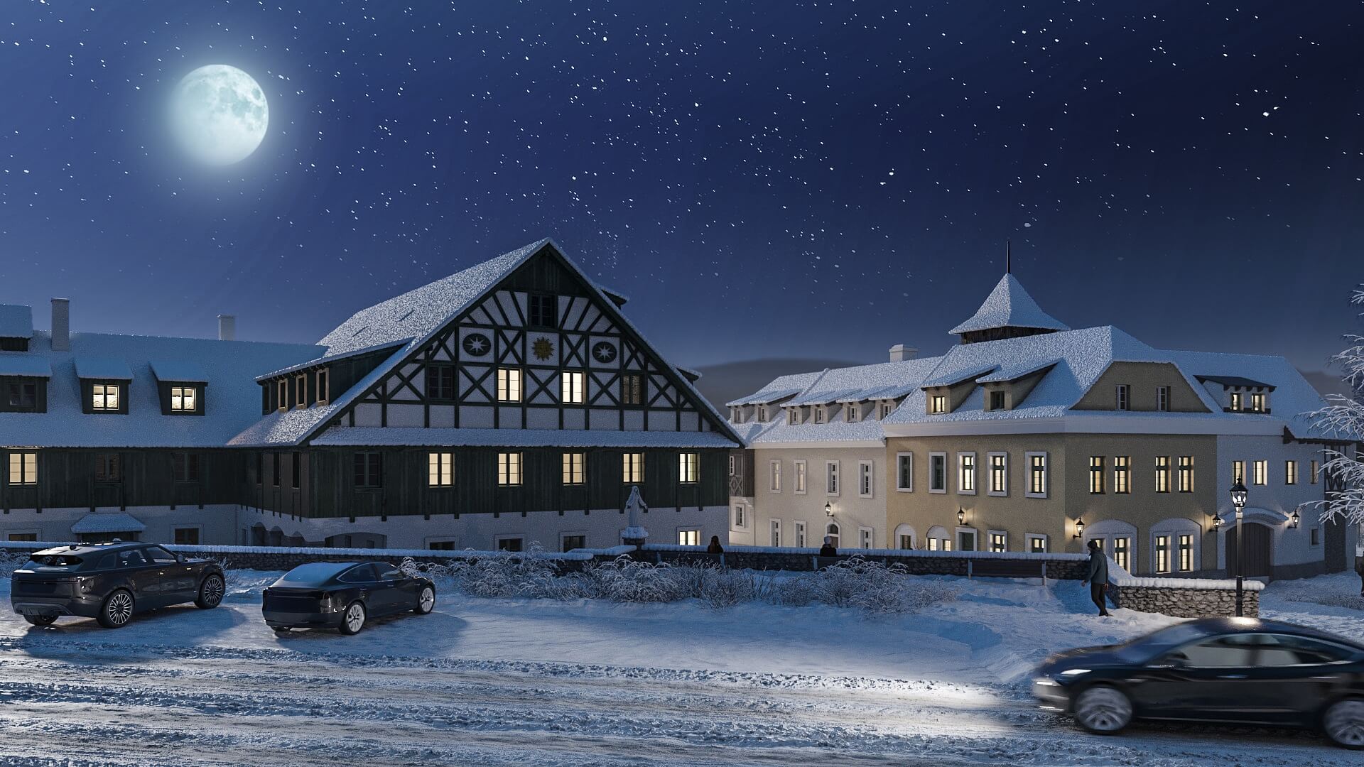 The developing town of Boží Dar is surrounded by the picturesque Krušné Mountains, providing a unique setting for year-round living. The area offers over 120 kilometers of maintained cross-country skiing trails, seamlessly connecting to additional routes, including the Krušnohorská Magistrála. Experienced downhill skiers will appreciate the Neklid ski area with its groomed snowpark and nearby Klínovec, while families with children can enjoy two smaller ski areas right in Boží Dar. Outside the winter season, visitors are drawn to the region’s abundant nature and wide range of leisure time activities. Popular destinations include the Novako adventure area, Boží vyhlídka viewpoint, Boží Trail, and Ježíškova path, which features two circuits with various play elements. In the town center, amenities include the popular Červený Vlk brewery, a café, grocery store, local history museum, tourist information center, and several restaurants. The renowned spa towns of Jáchymov and Karlovy Vary, offering rich cultural and wellness experiences, are within a short drive.