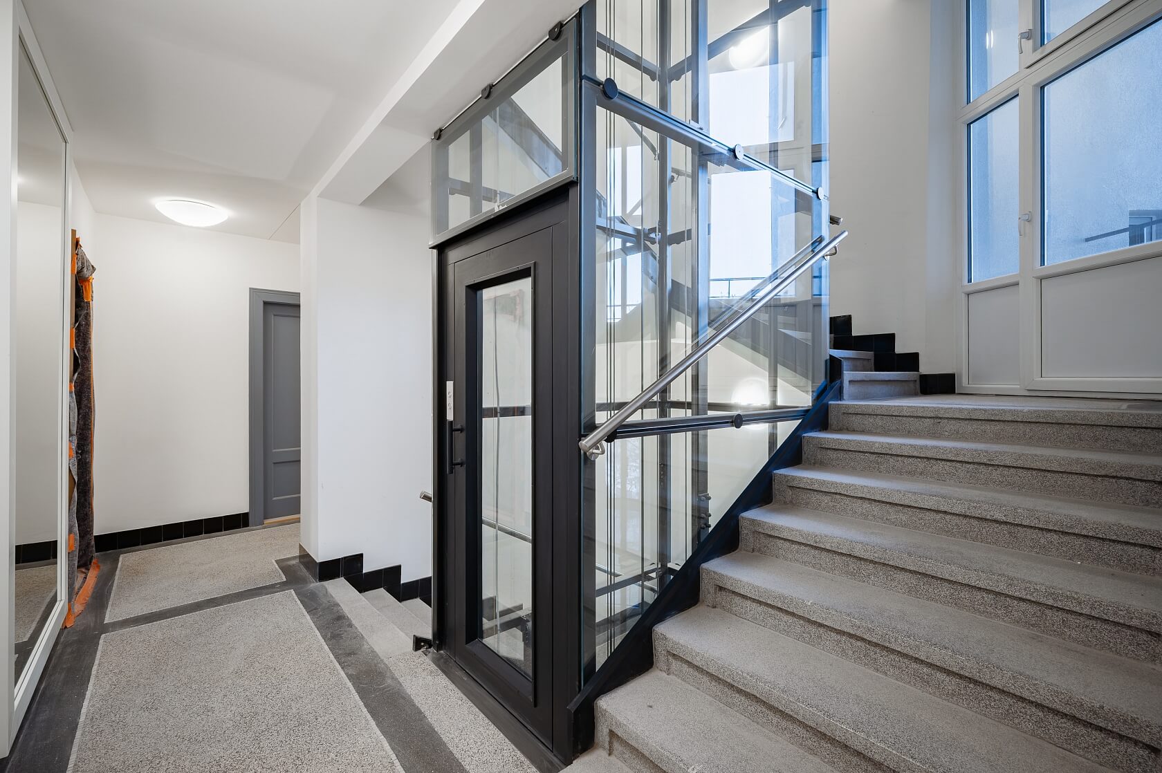 This part of Prague 3 is served by regular tram and bus lines, providing excellent connections to the city center and other districts. The surrounding area offers a wide range of amenities, including a supermarket, restaurants, and cafés, as well as kindergartens, primary schools, and a high school. From here, it's just a few minutes on foot or by running to Vítkov Hill, Parukářka Park, and the Pražačka sports complex. A bike path leads through a tunnel to Karlín and continues along the Vltava River to Libeň, Troja, or Letná.